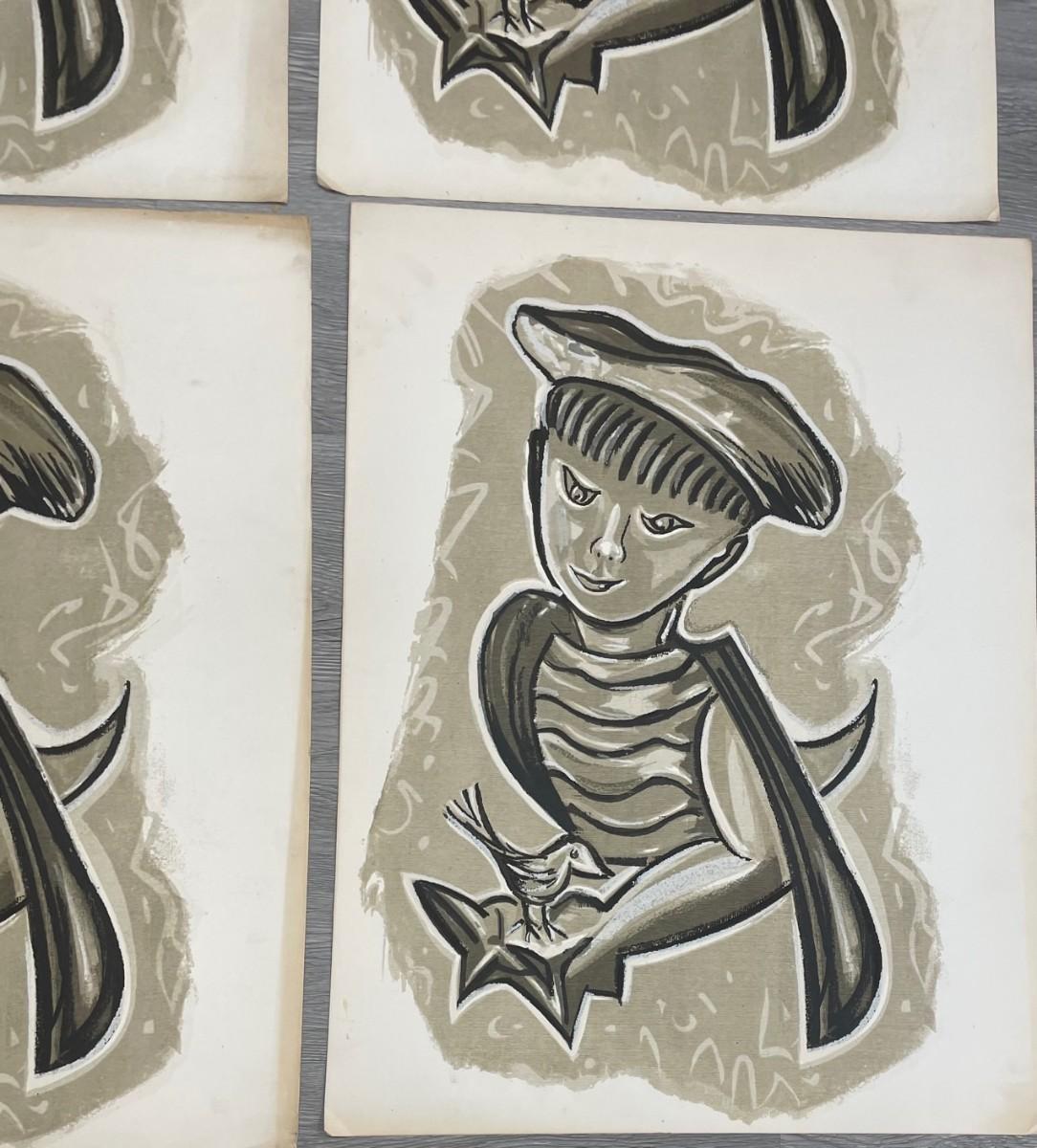 Description: total 4 Charles Melohs sketches