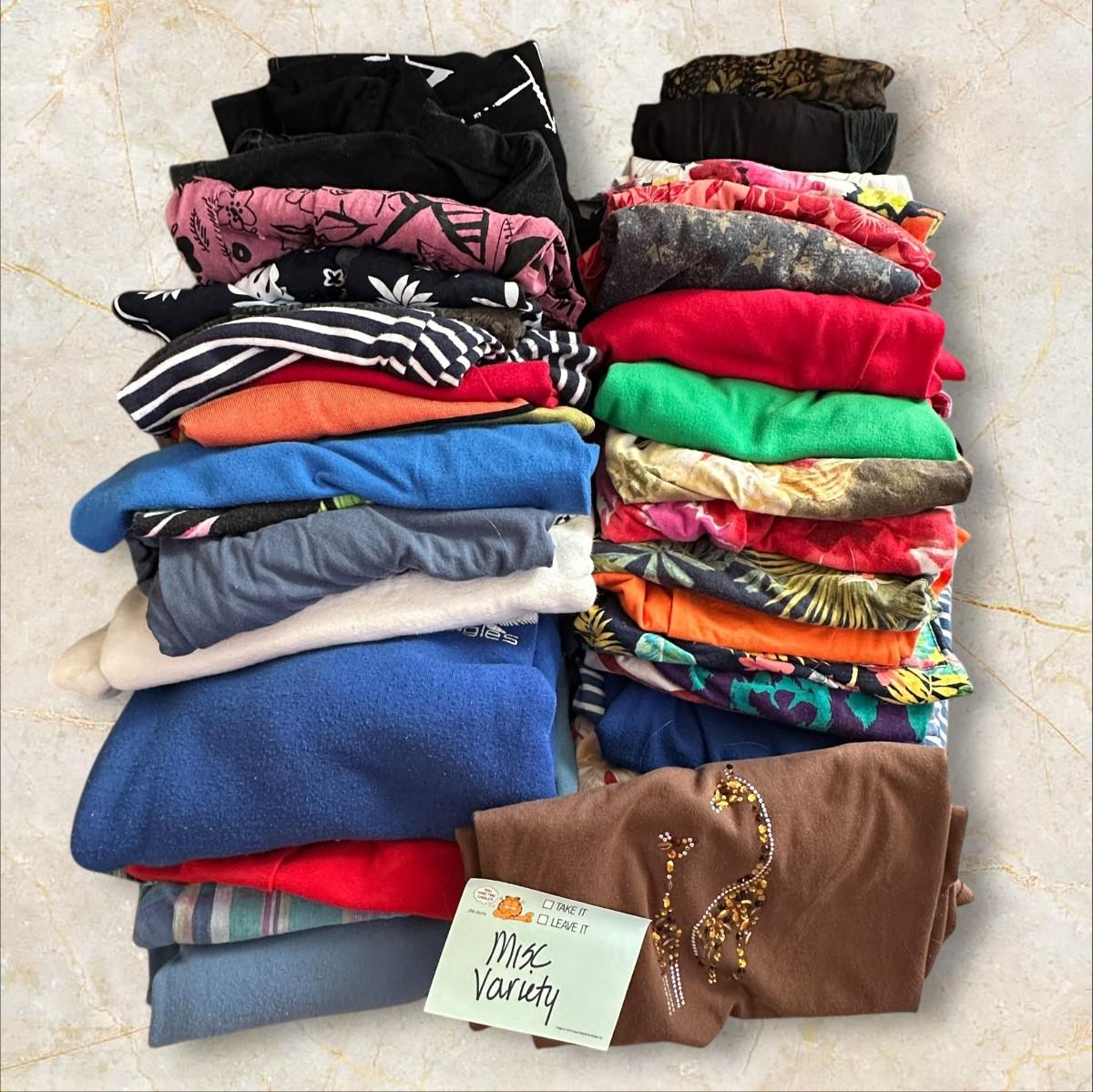*The clothes in this estate were all owned and worn by the same lady. Almost every item is either size Medium, Large, 12 or 14. They have all been worn from little to a good bit. We have culled out the pieces that are stained, torn, or unwearable to the best of our ability. All clothes listed are wearable.