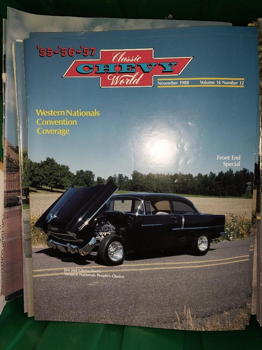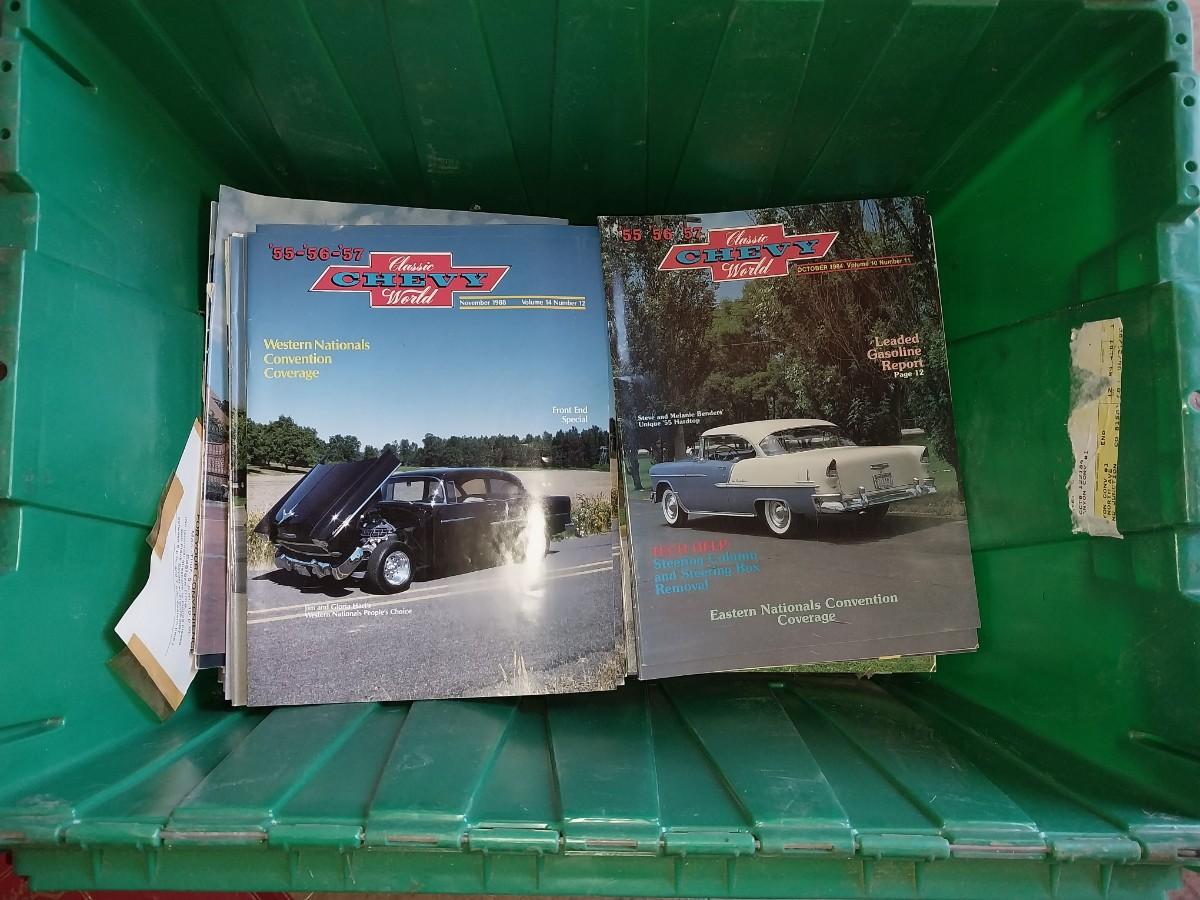 TOTE 1/2 FULL OF '55-'56-'57 CLASSIC CHEVY WORLD MAGAZINES