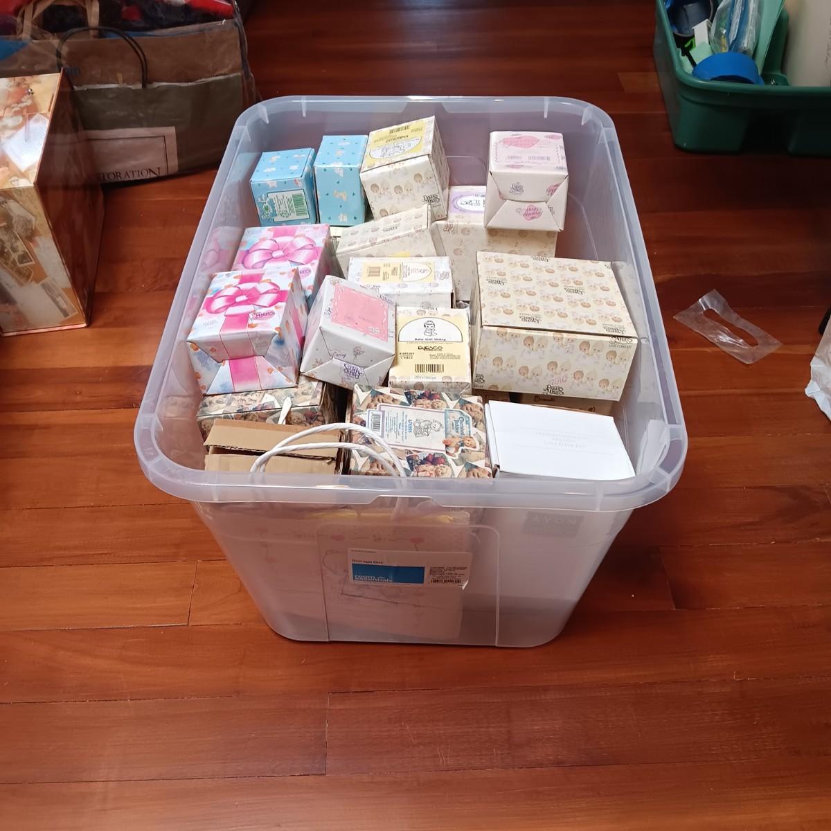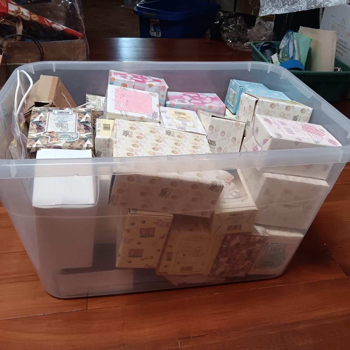 TOTE FULL OF PRECIOUS MOMENTS AND CHERISHED TEDDIES