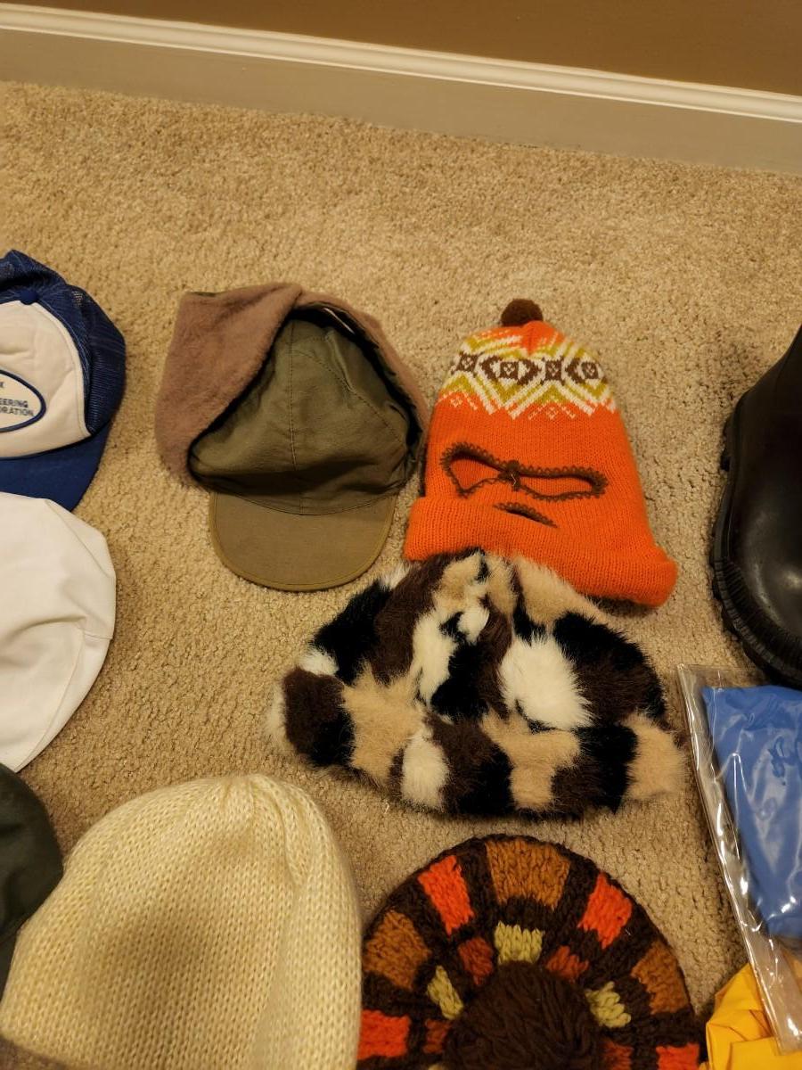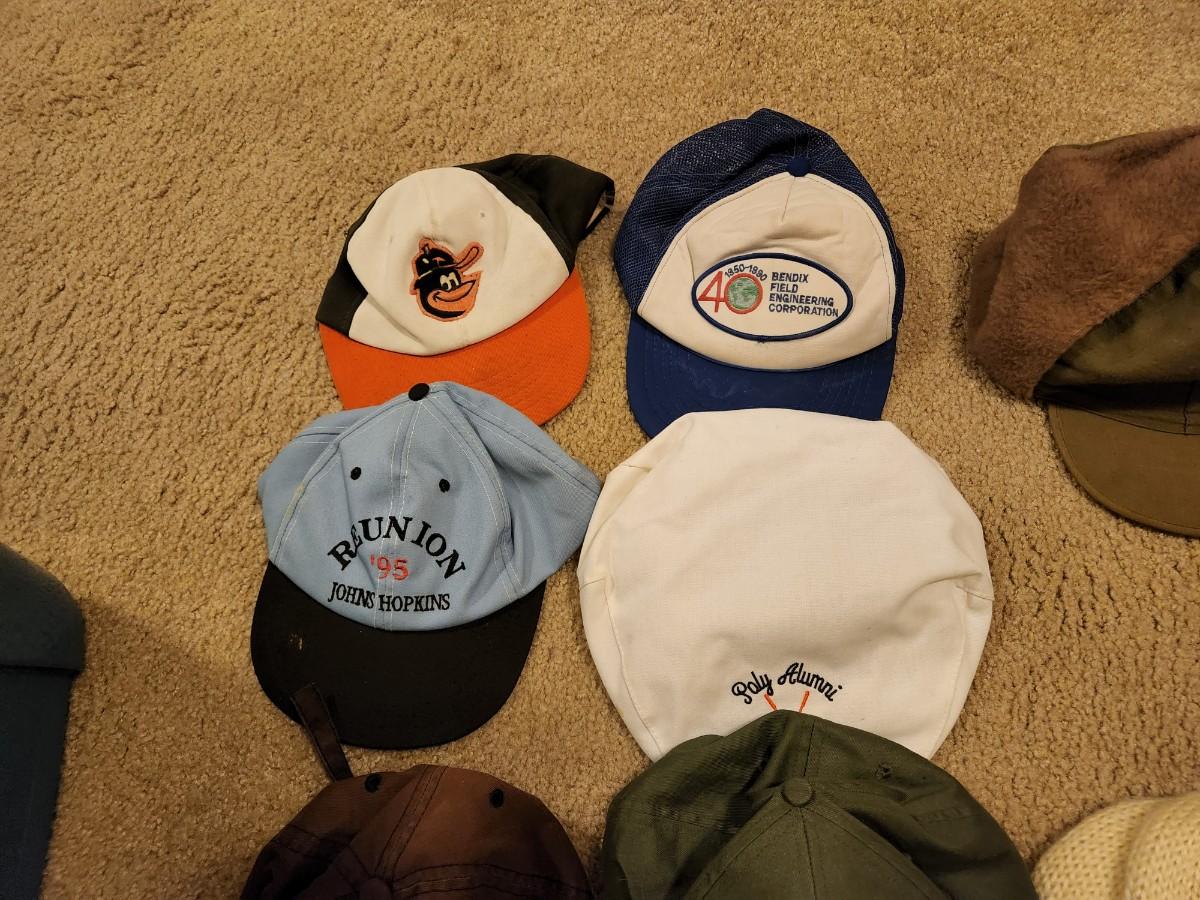 Orioles hat, Bendix Trucker hat, Korean Trooper cap( Elmer Fudd)