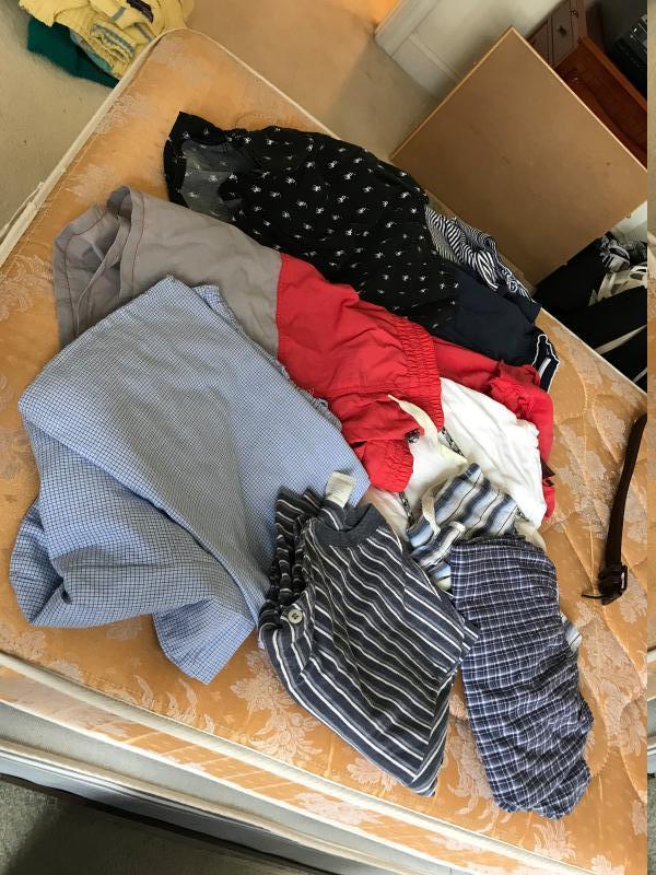 Lot includes mens size L and XL. To include teeshirts, shorts, pajamas, swim shorts, etc. etc. in various styles, colors, and brands