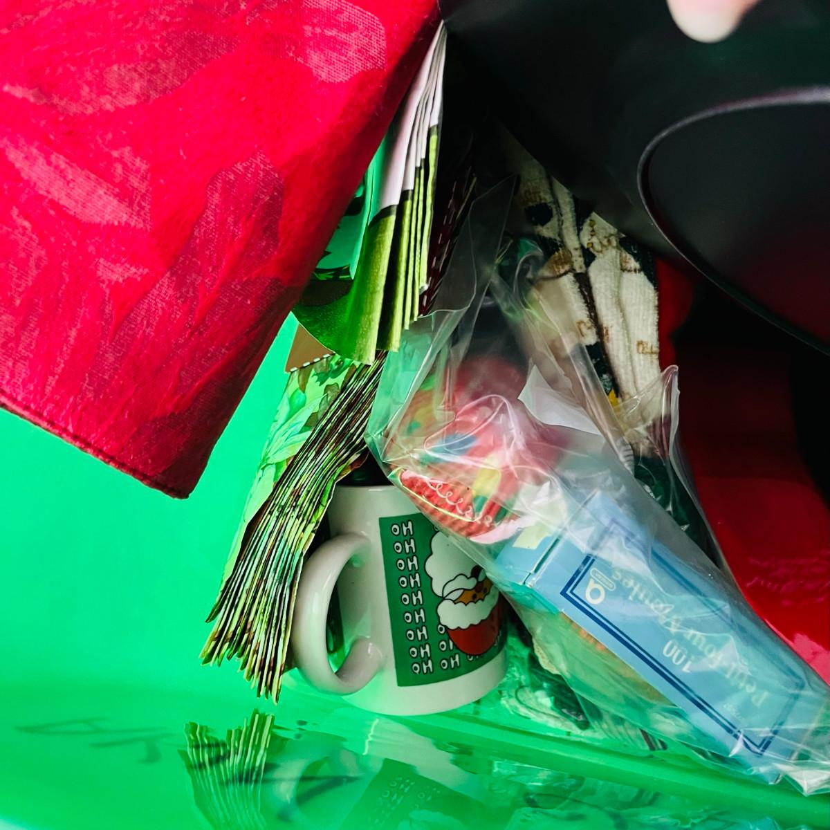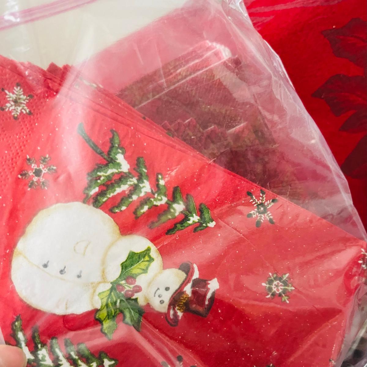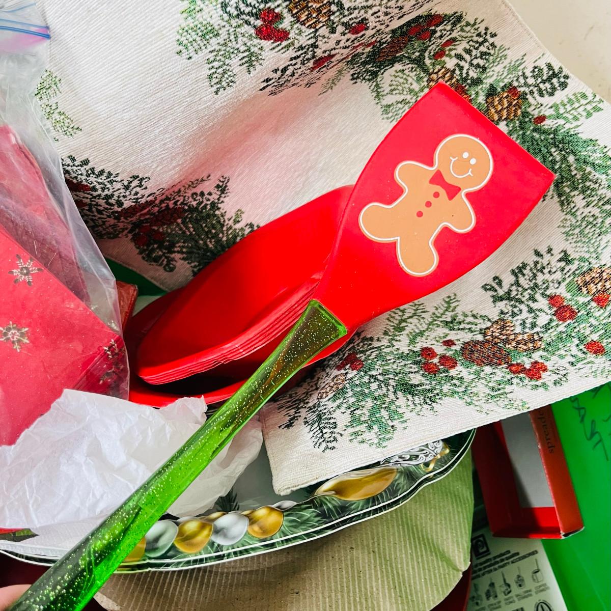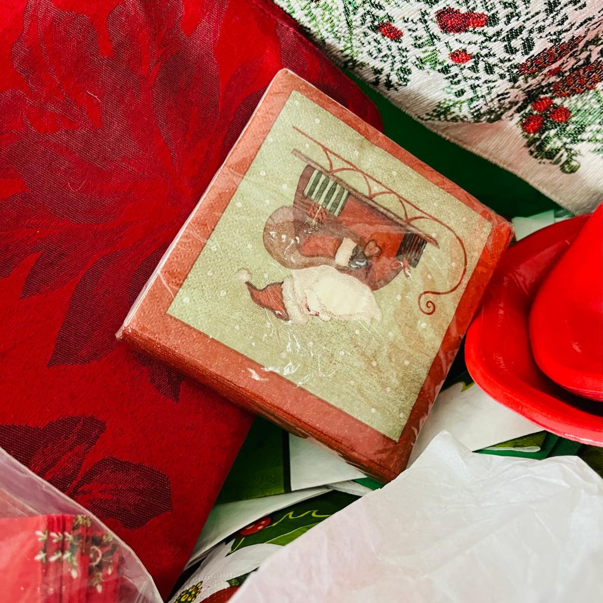 Tote of Christmas dining supplies