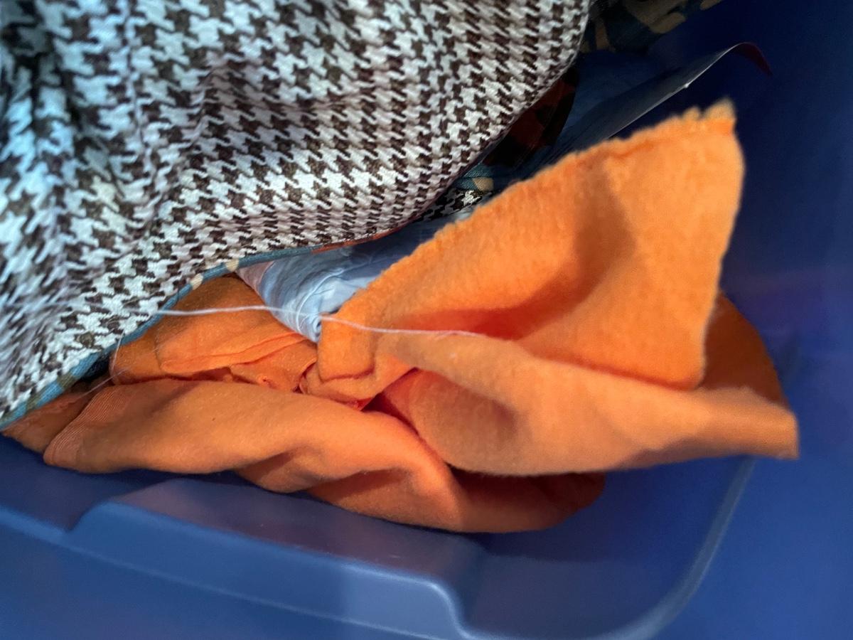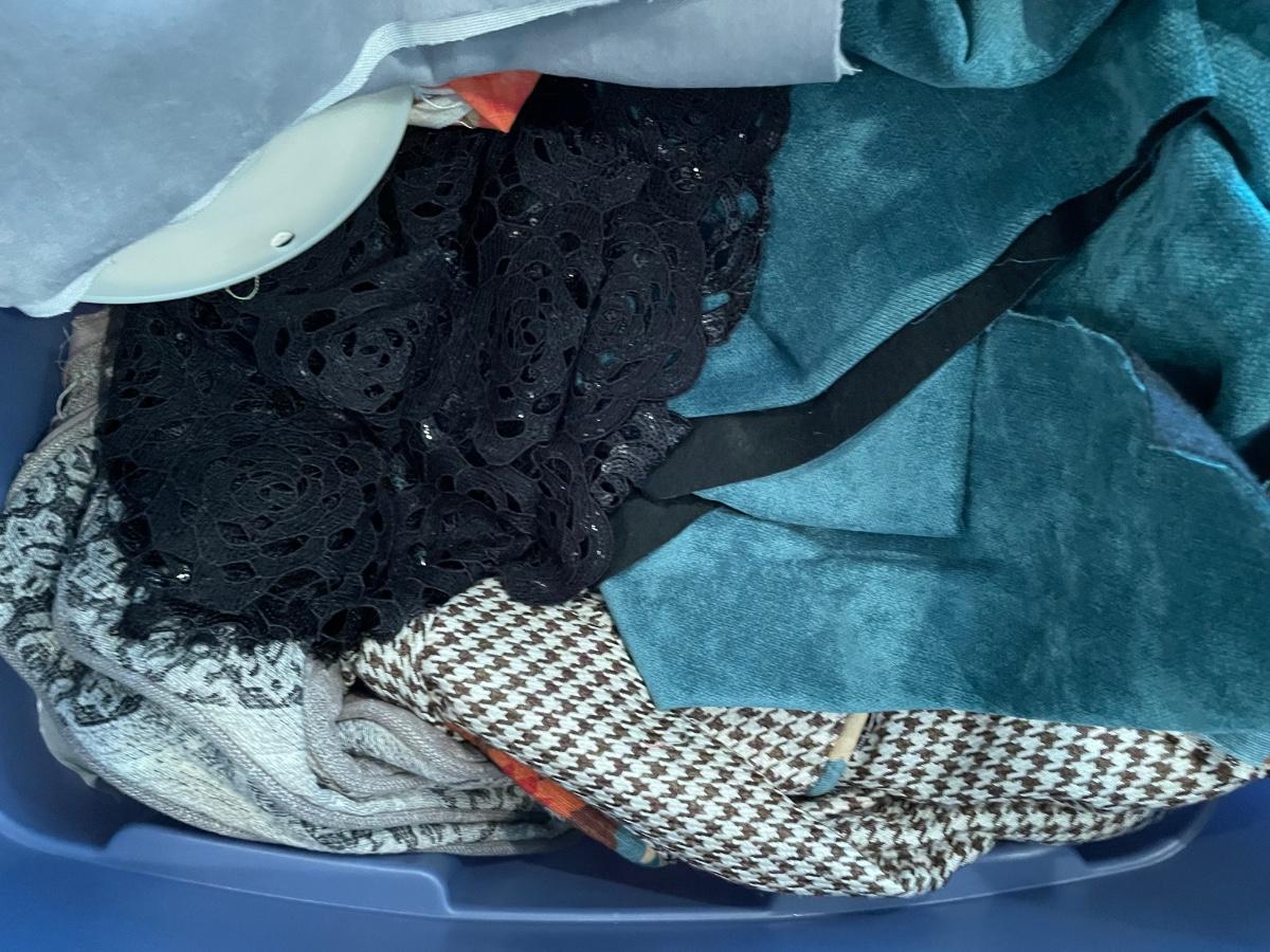 Tote of fabric & bolt of fabric