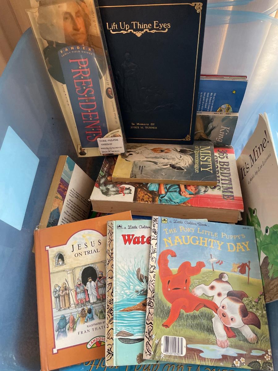 Tote with lid of kids books