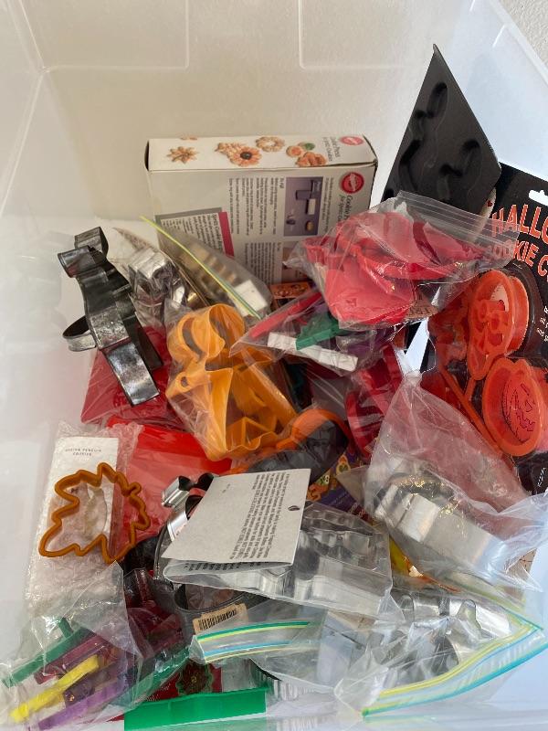 Tote of Misc Cookie Cutters & Mini Bakeware