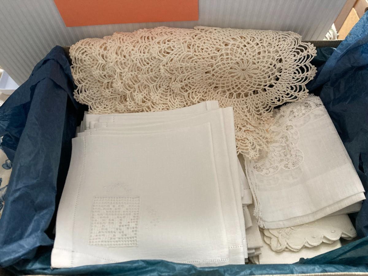 Nice, tote full of vintage linens. Great condition.