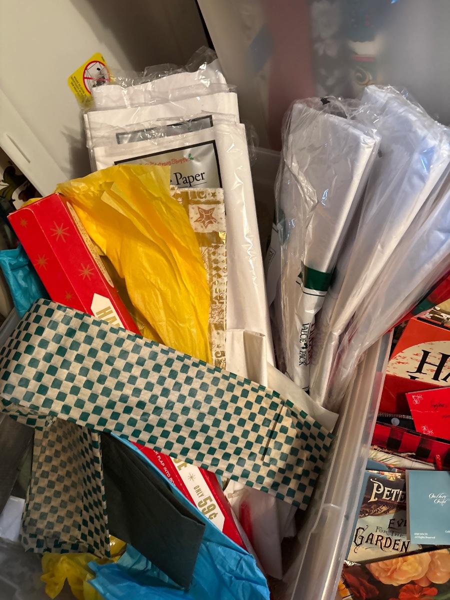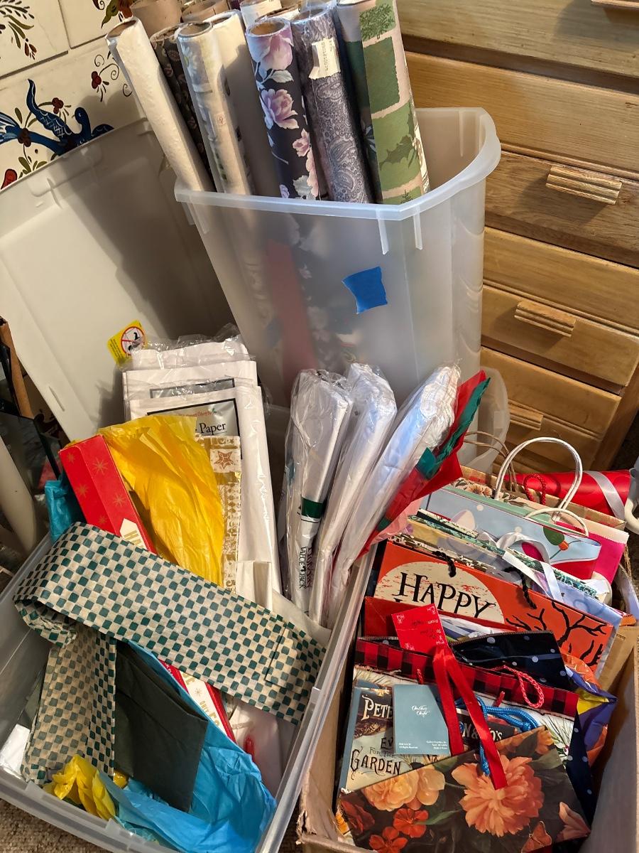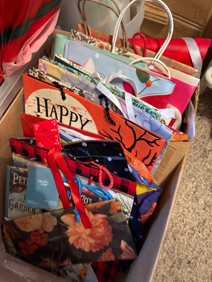Tote w/tissue paper, gift bags & wrapping paper