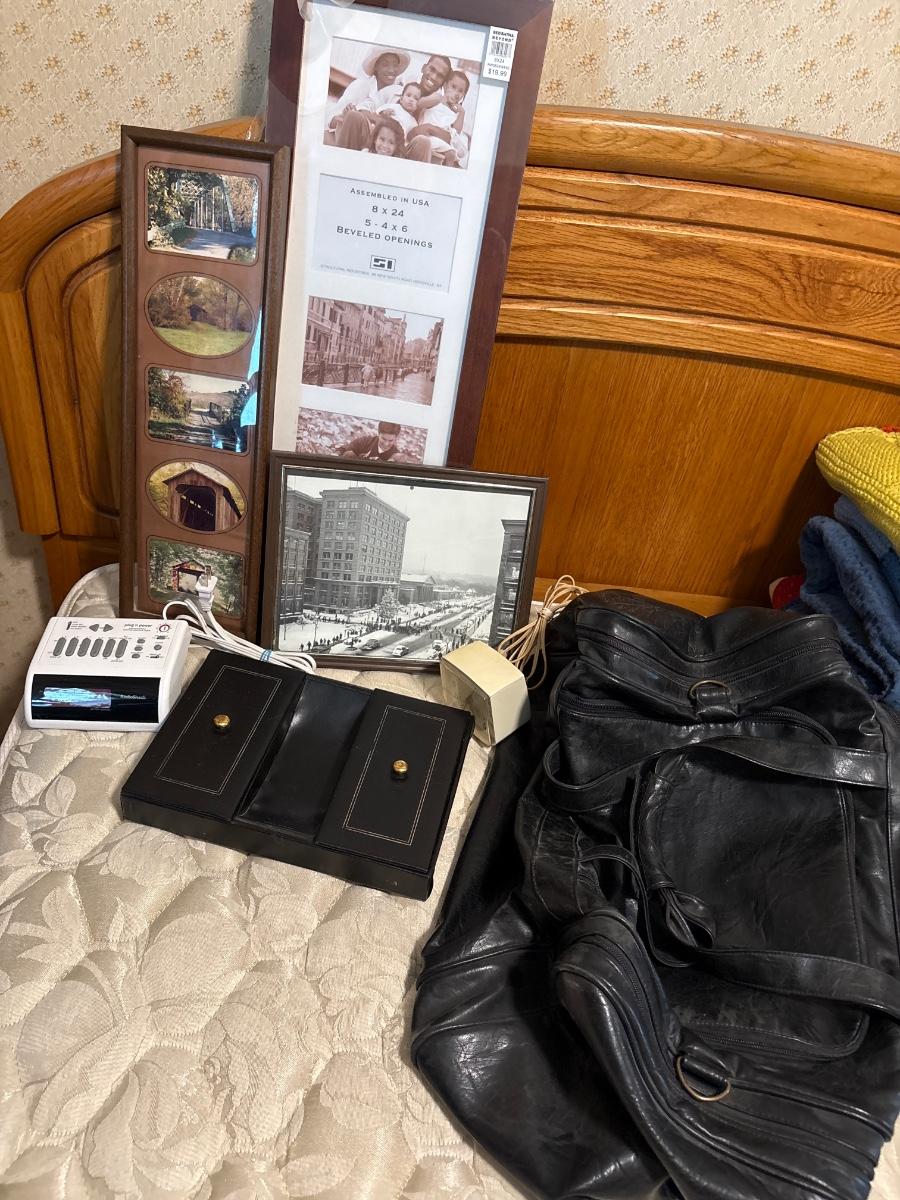Totes leather duffel, jewelry case, programmable timer and picture frame