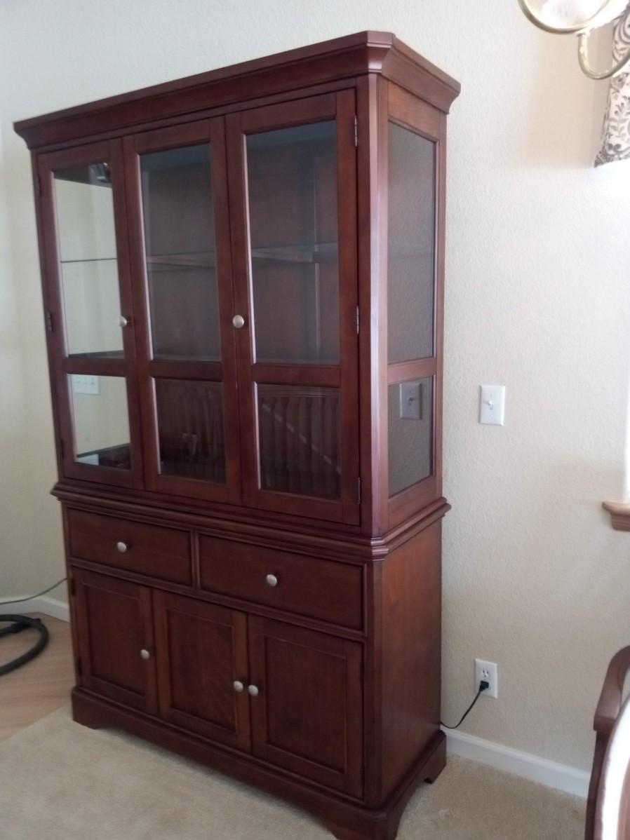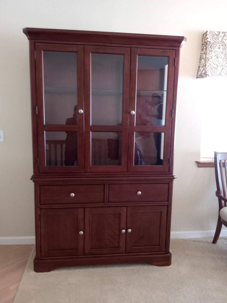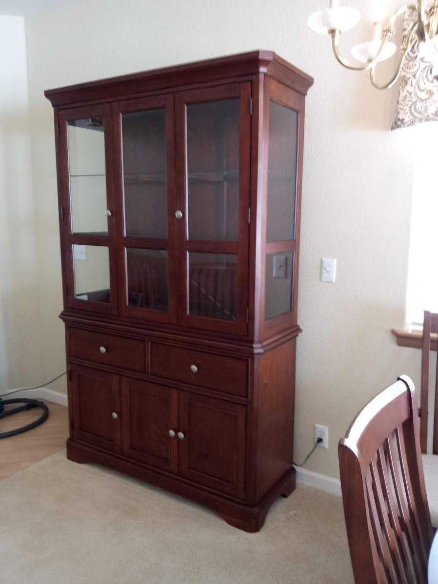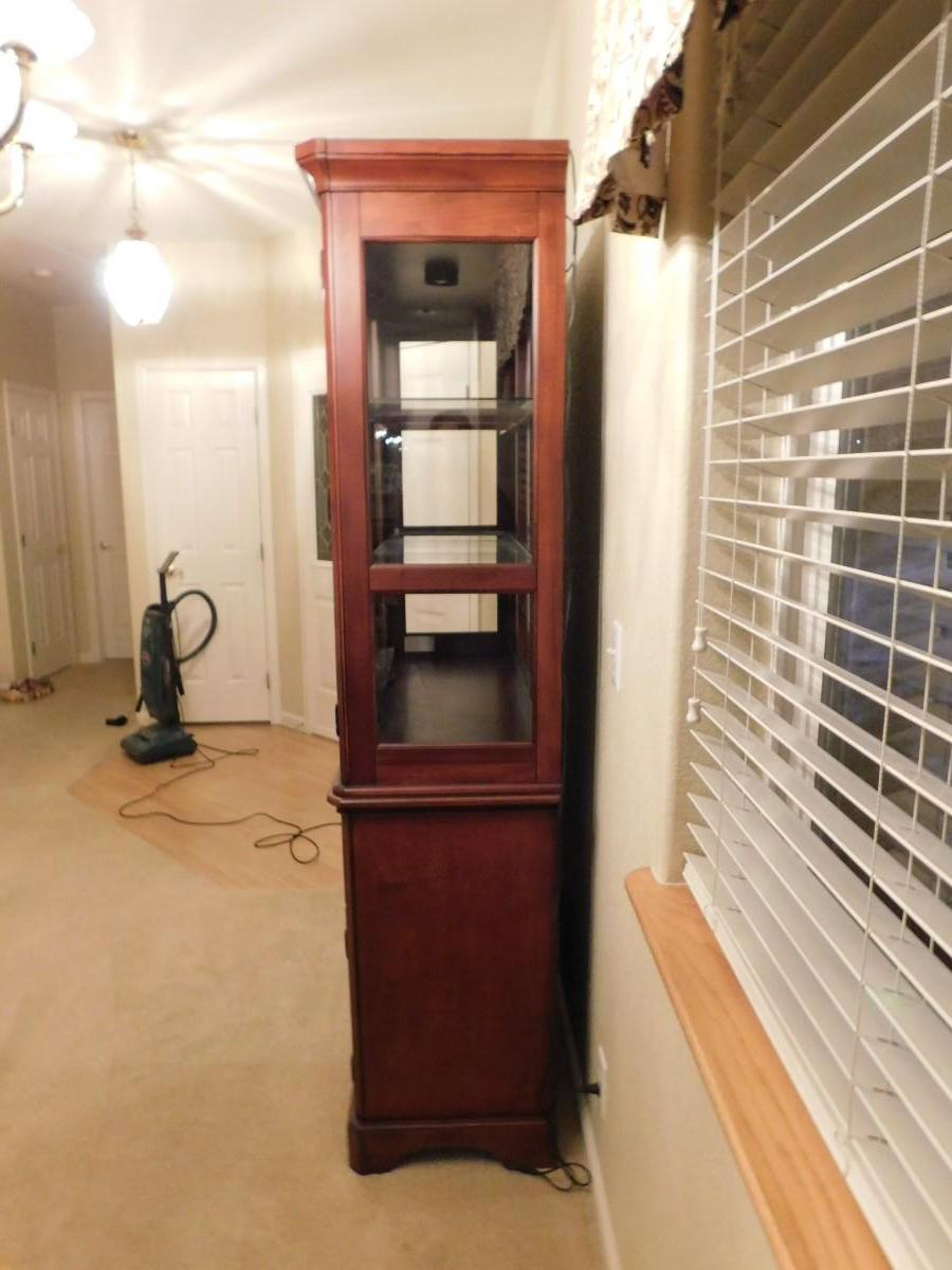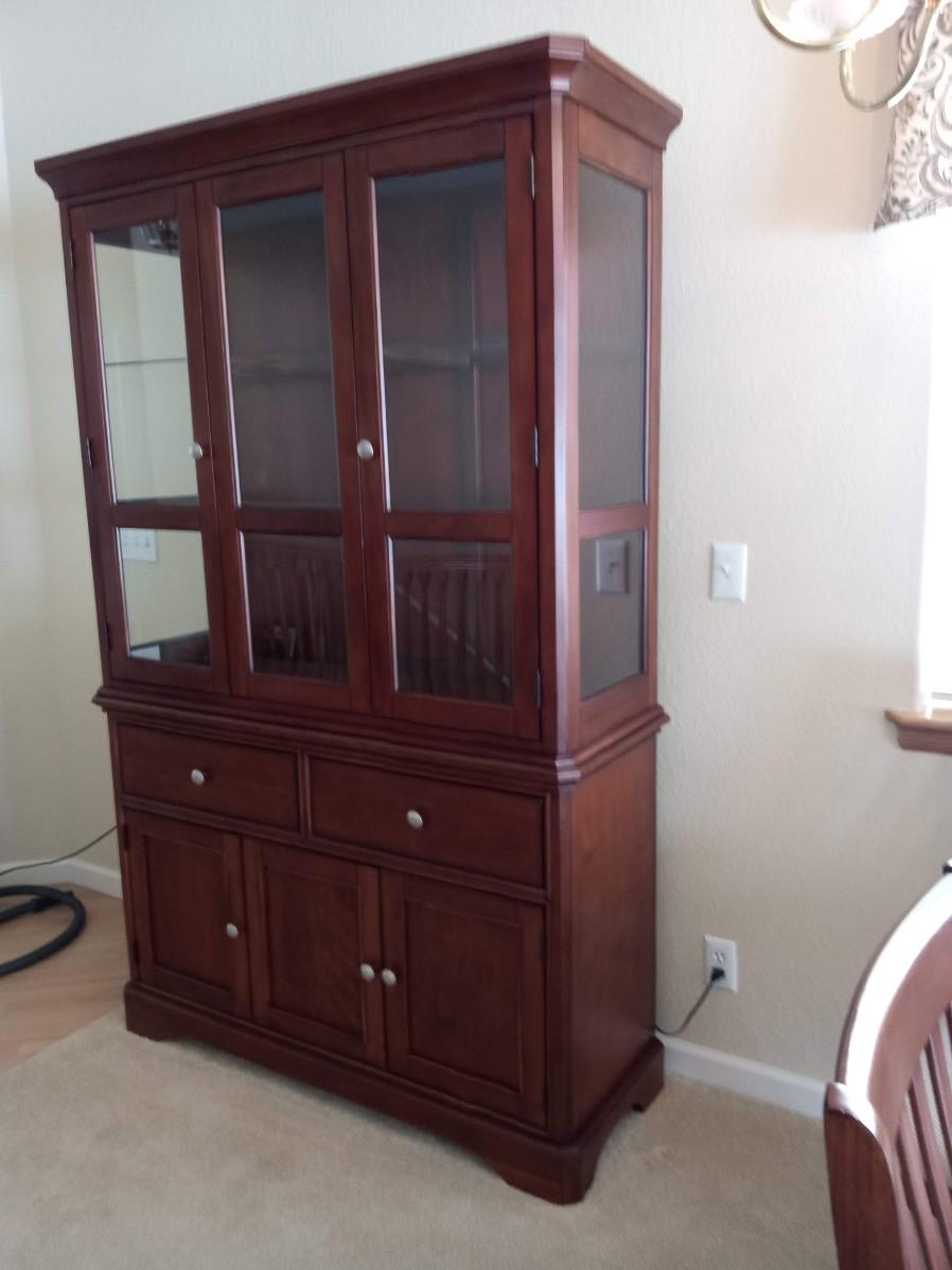 THE HUTCH HAS 3 WAY LIGHT ACTIVATED WITH A TOUCH OF YOUR FINGER ON THE UPPER DOOR HINGE