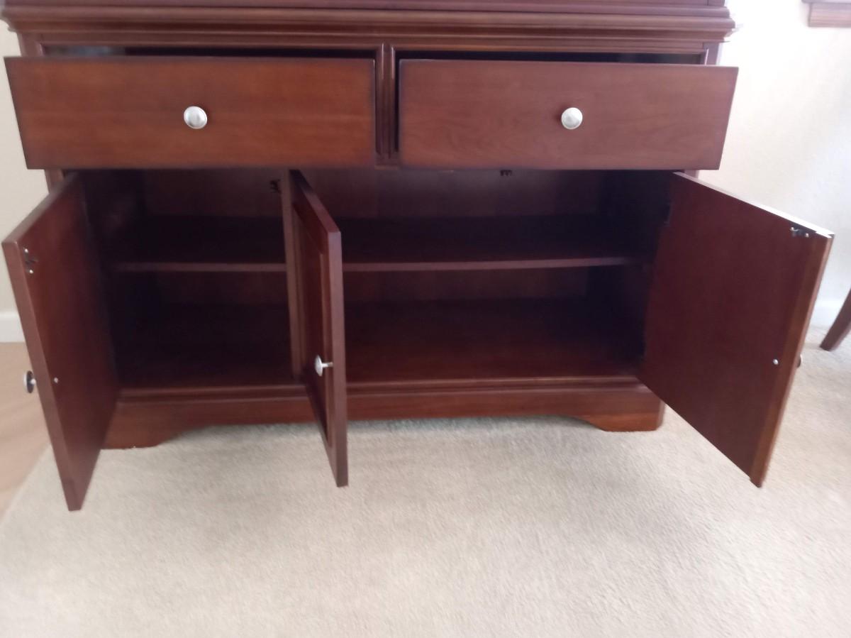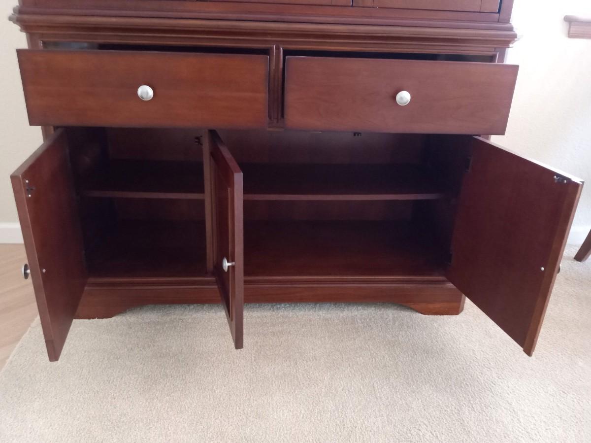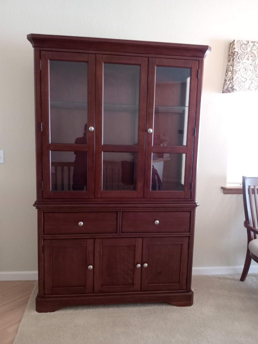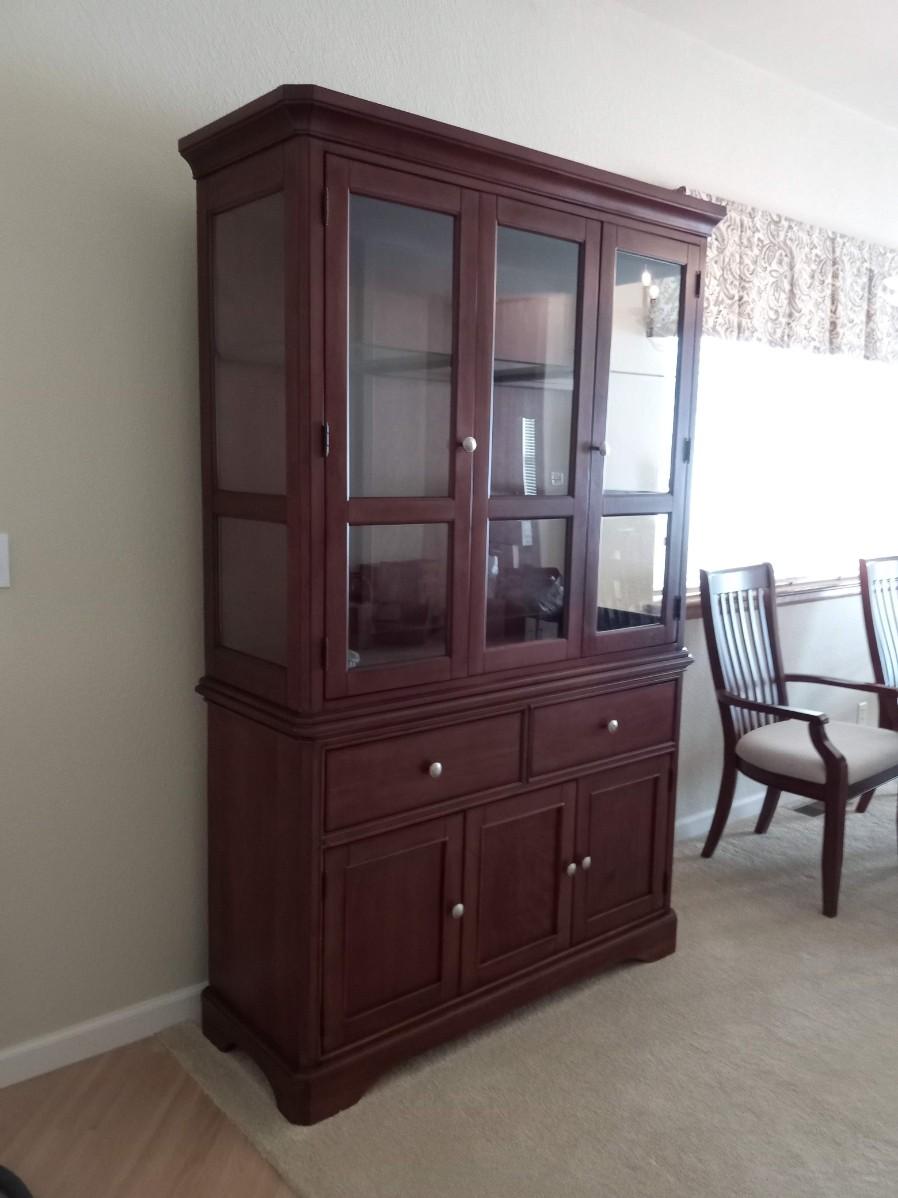THE HUTCH HAS 3 WAY LIGHT ACTIVATED WITH A TOUCH OF YOUR FINGER ON THE UPPER DOOR HINGE