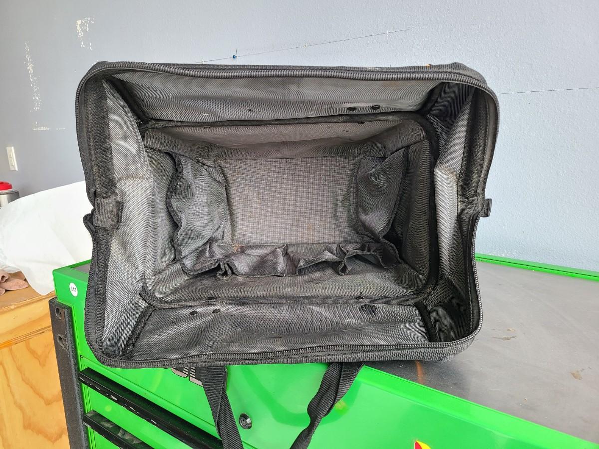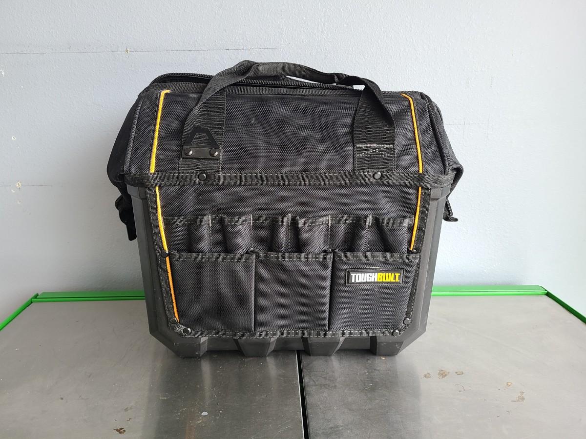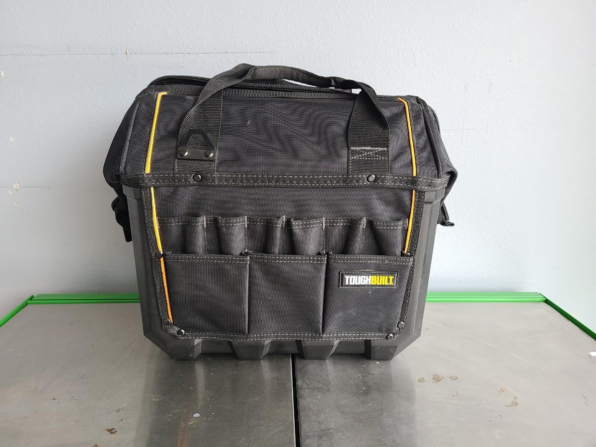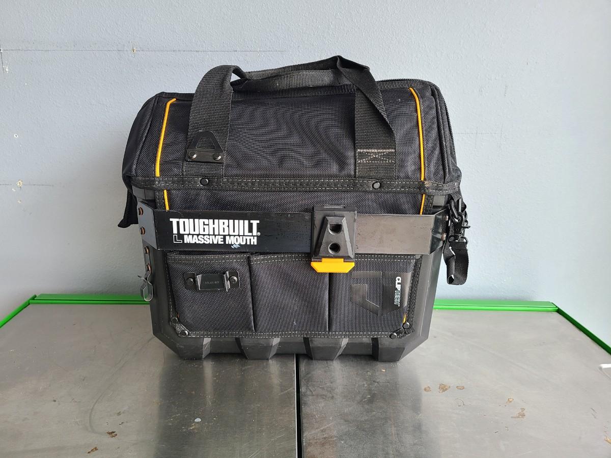 Toughbuilt L Massive Mouth Tool Carry Bag by Cliptech . 16inch Heavy Duty Plastic and Nylon Tough Bag. In Very Good Used Condition.