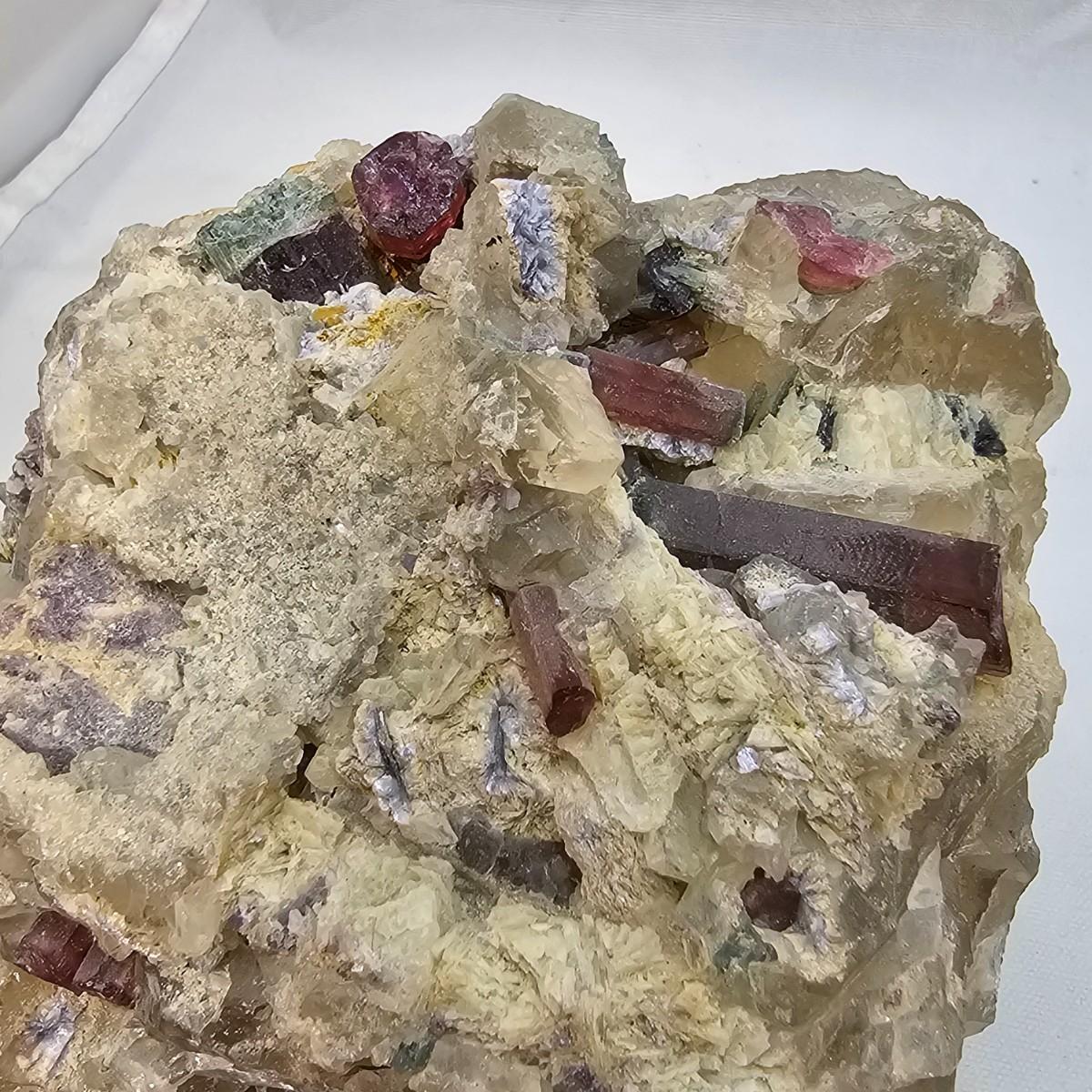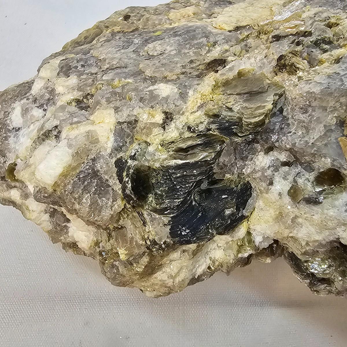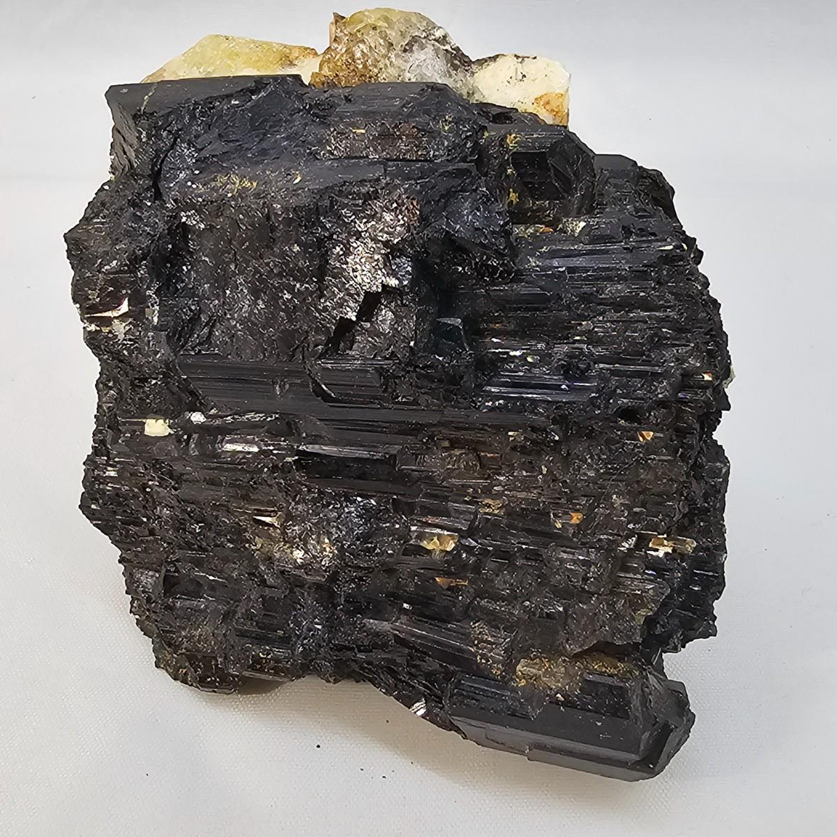 Stunning examples of what appears to be tourmaline in its many colors, along with lepidolite, kyanite and more. Black, green and yellow tourmaline in crystal and tubular form. Kyanite in hexagonal rod form in matrix. The large piece of black tourmaline measures approximately 3.5" x 2.5" x 3"H. All items in rough, natural form. See photos for details. Shipping available. All sales are final. No returns or refunds. Please bid accordingly.