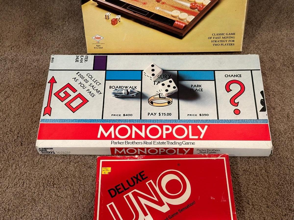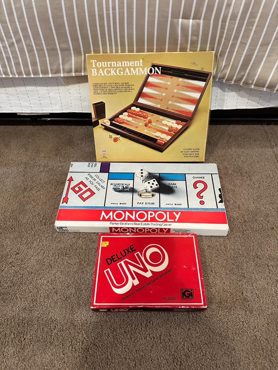 TOURNAMENT BACKGAMMON, MONOPOLY & DELUXE UNO GAMES