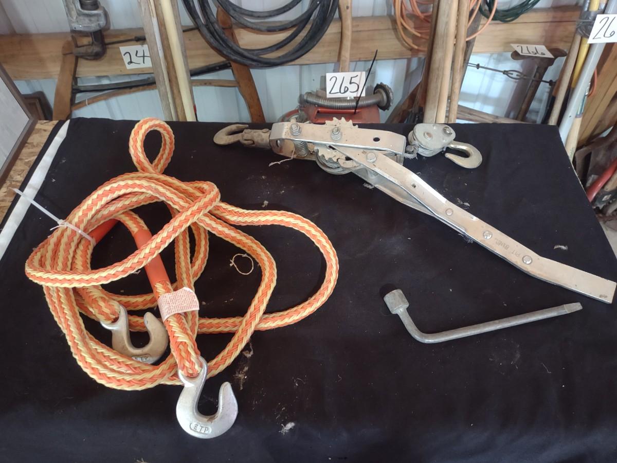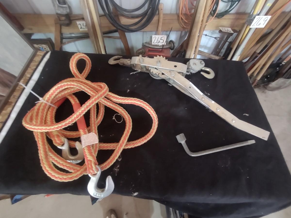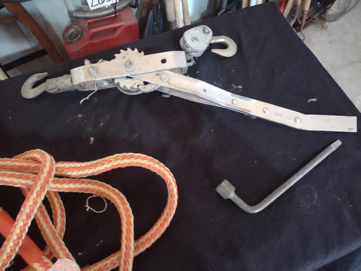 TOW ROPE, COME-ALONG AND A TIRE IRON