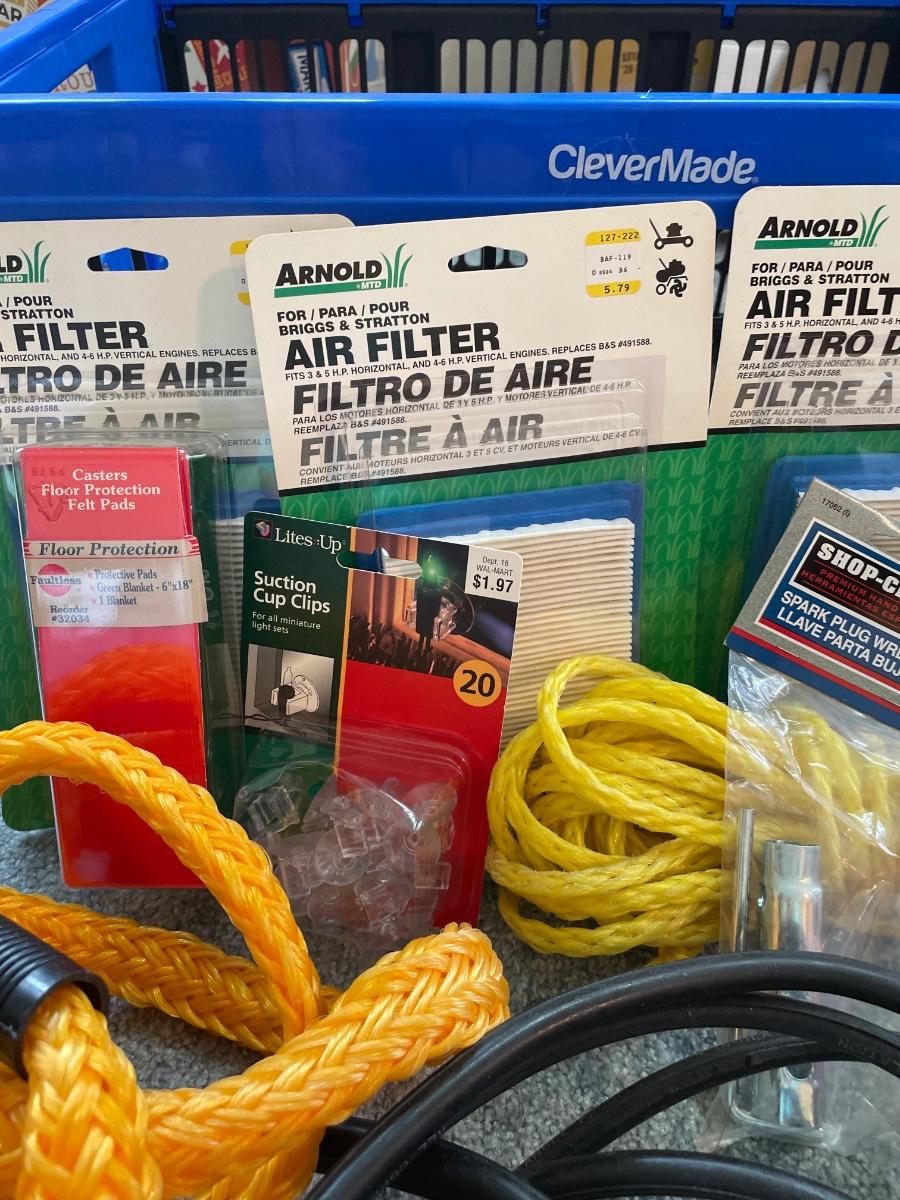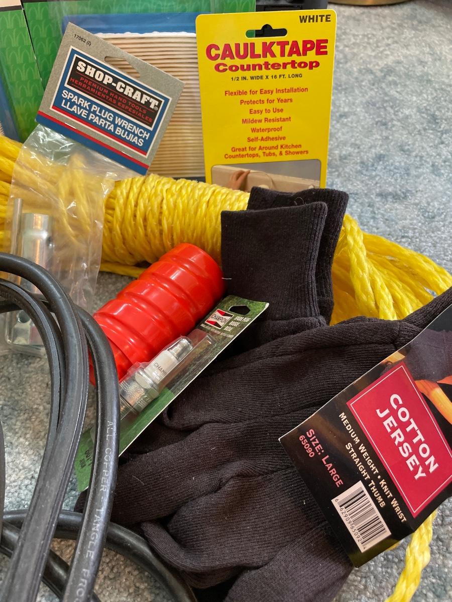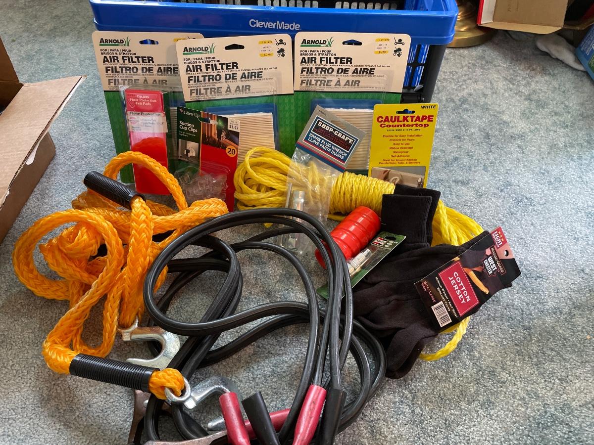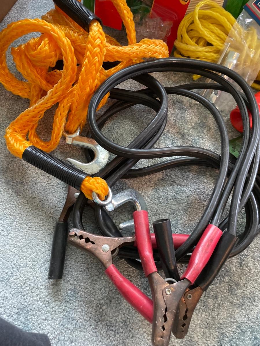 Tow rope, jumper, cable, miscellaneous garage items