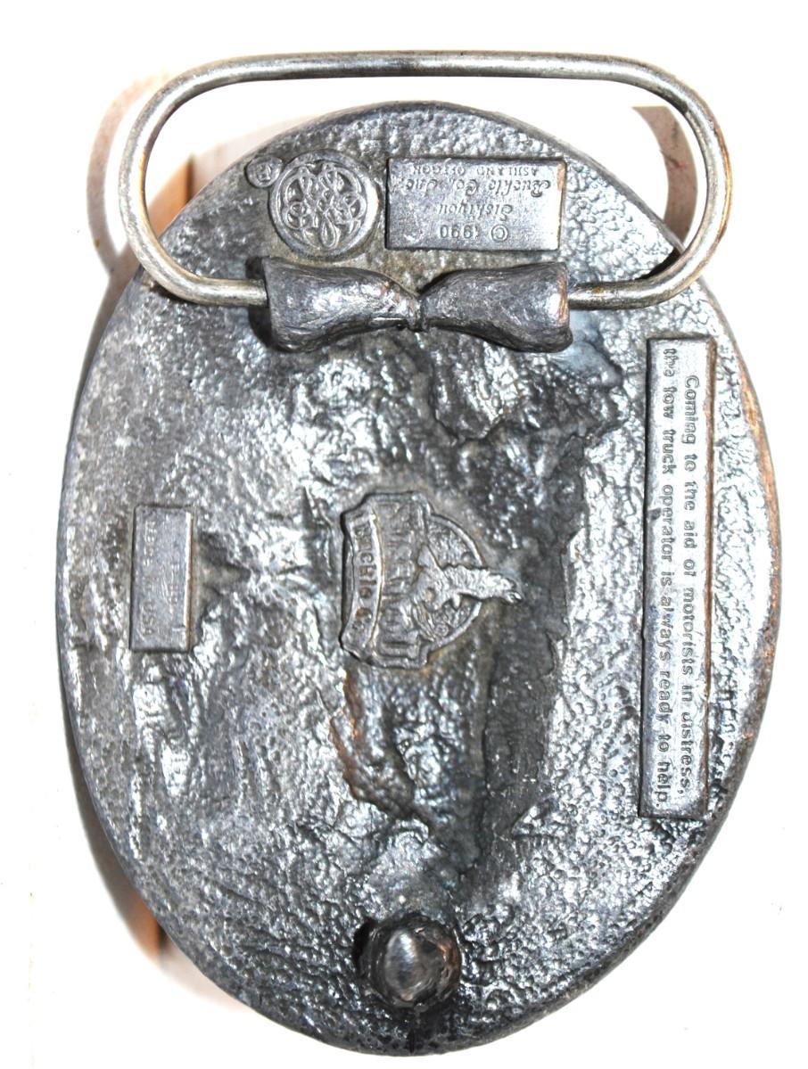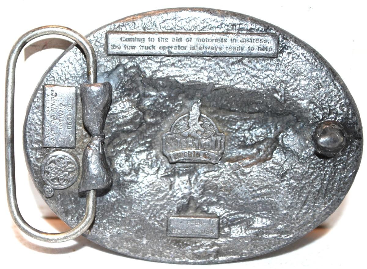 "Tow Truck Towing" Belt Buckle Sishiyou Co. ©1990 Oval 3" x 2½"