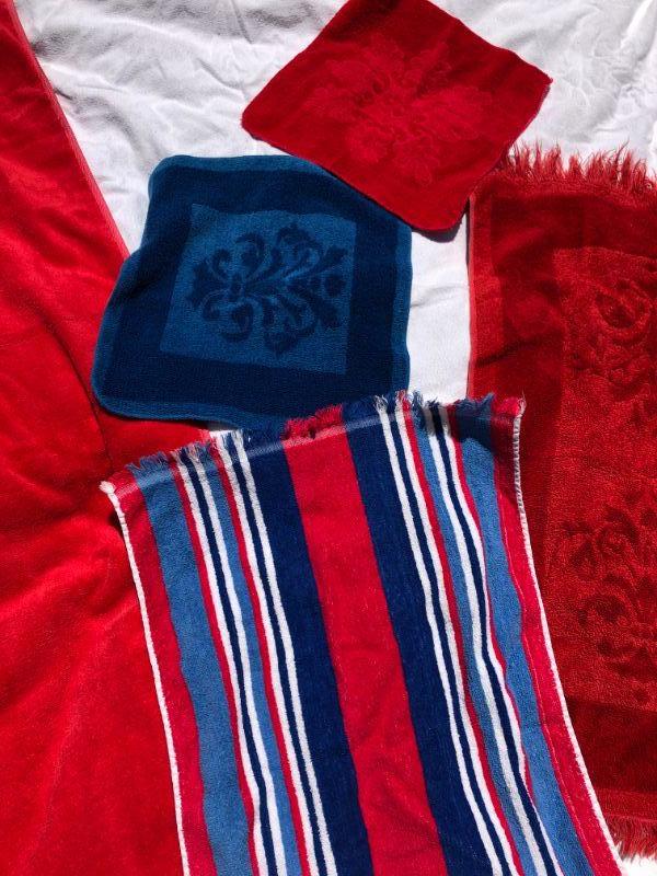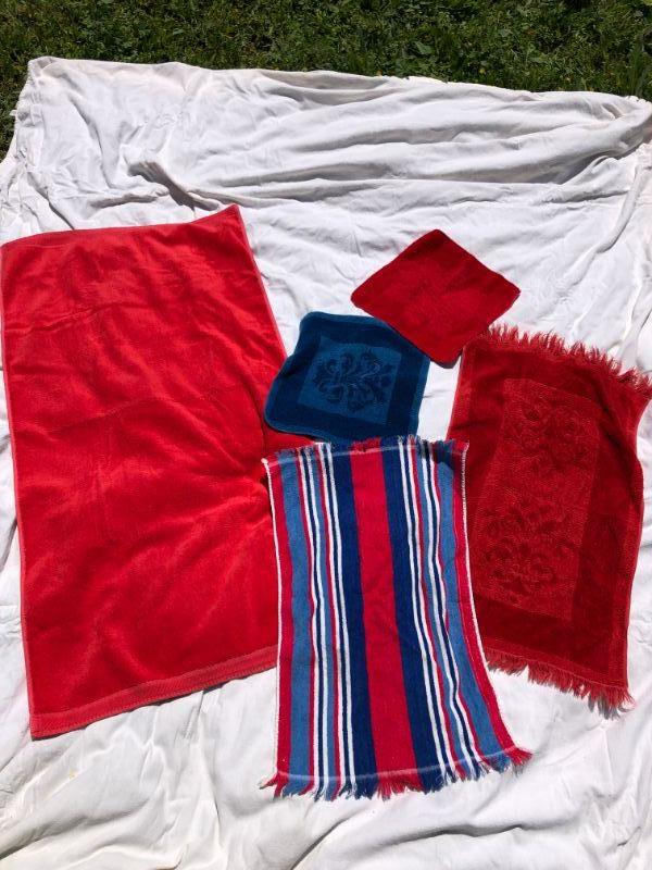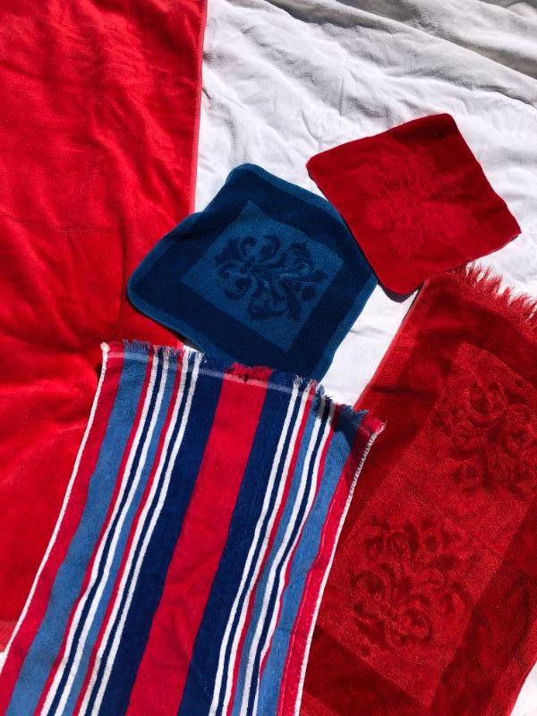 Vintage TOWEL LOT - Cool Reds & Blue Retro towels