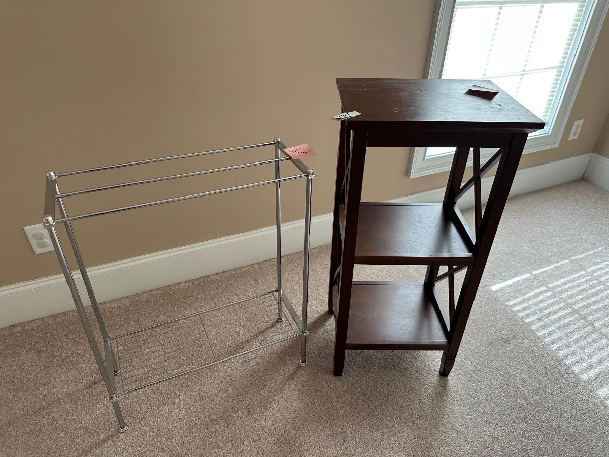 METAL TOWEL RACK AND WOOD 3 TIER STAND