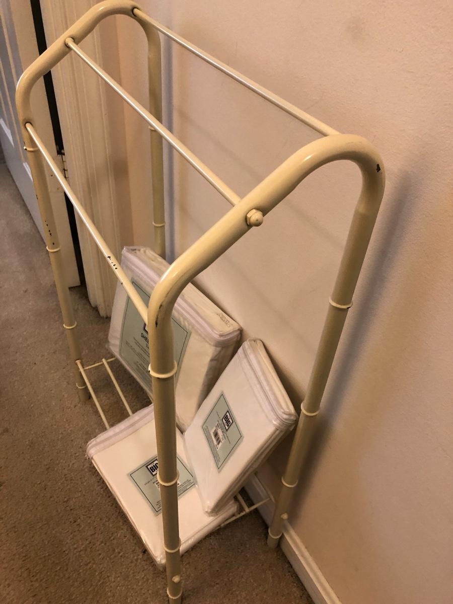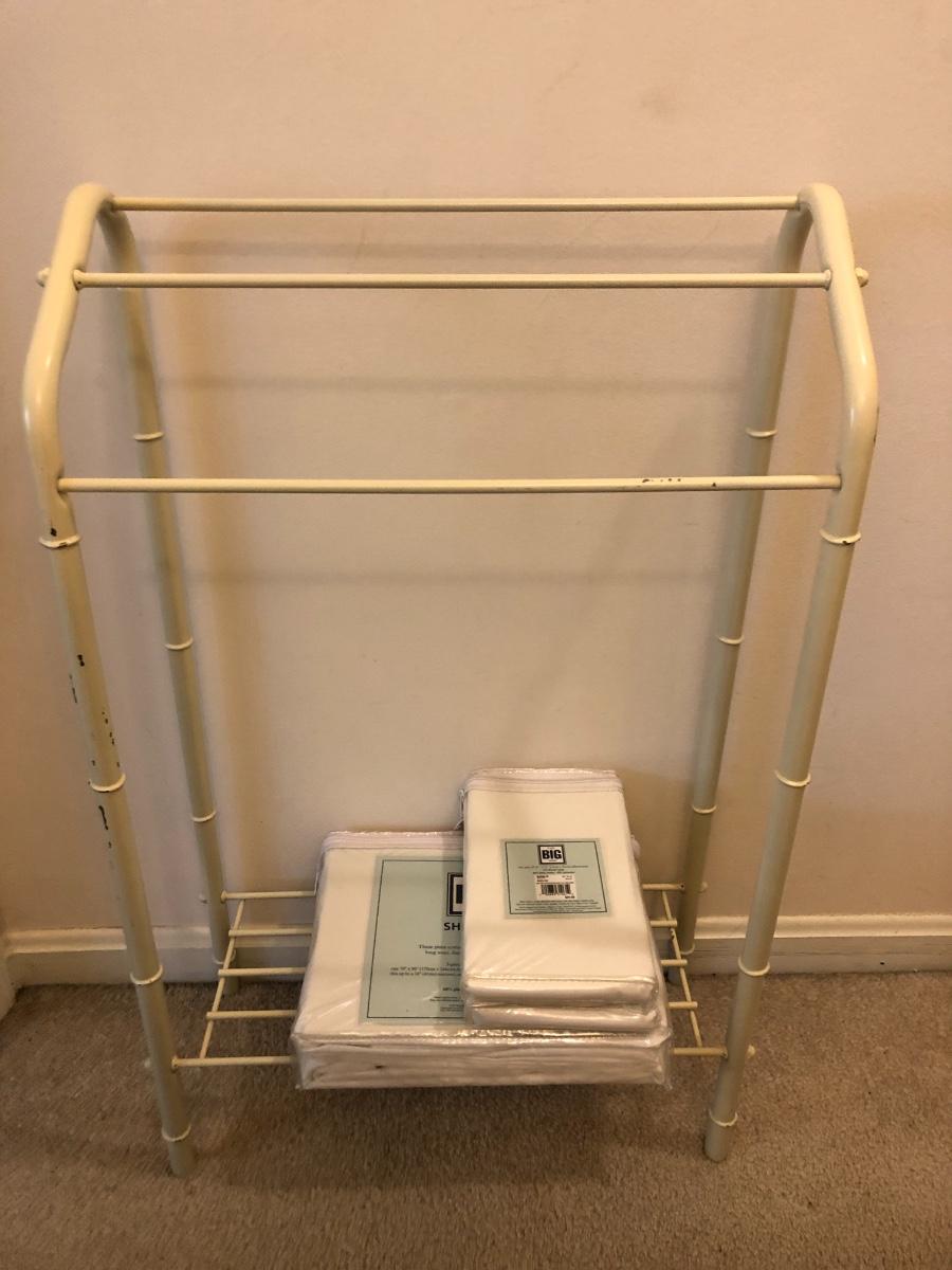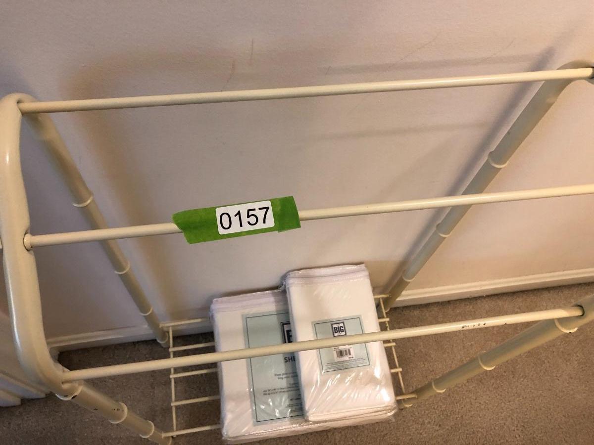 As always - NEVER A BUYER'S PREMIUM - NO CREDIT CARD FEES - All items start at $10 and are being auctioned with NO RESERVES to the high bidder. Metal towel rack does show wear. Sheets and pillow cases in original packaging.
