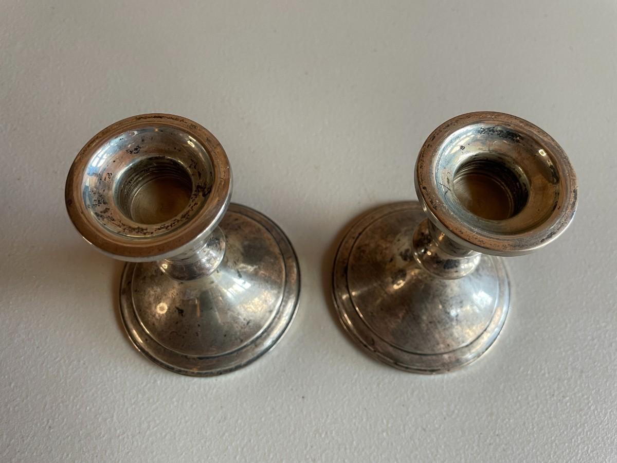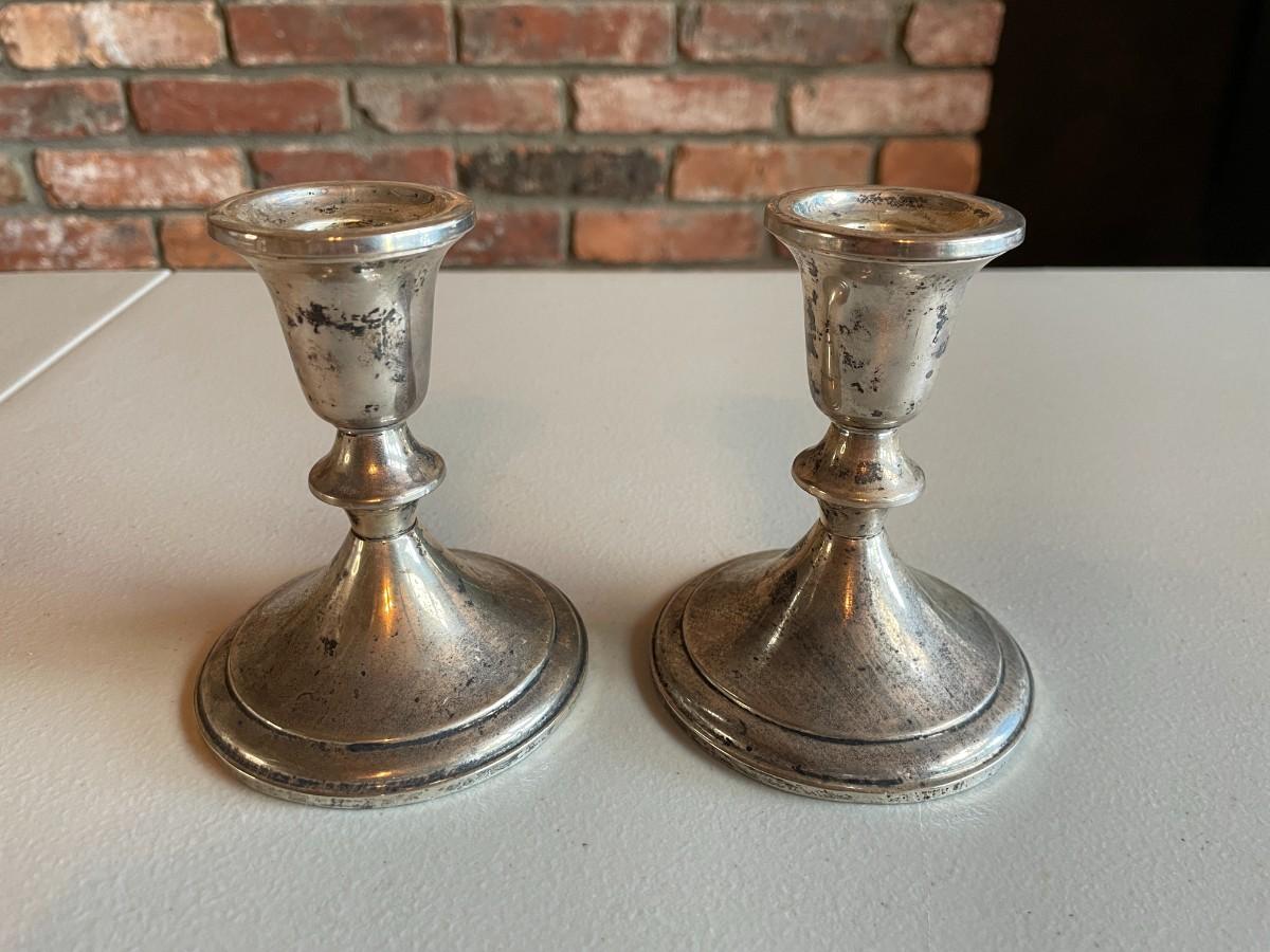 Vintage Set of 2 Towel Silver Newburyport Pewter Candleholders.