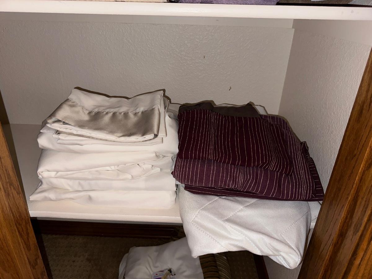 TOWELS, MATTRESS COVER AND SOME SHEETS