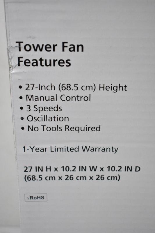 Tower Fan, Mainstays 27" Oscillating 3-Speed, Model #FZ10-10NB, Black - New