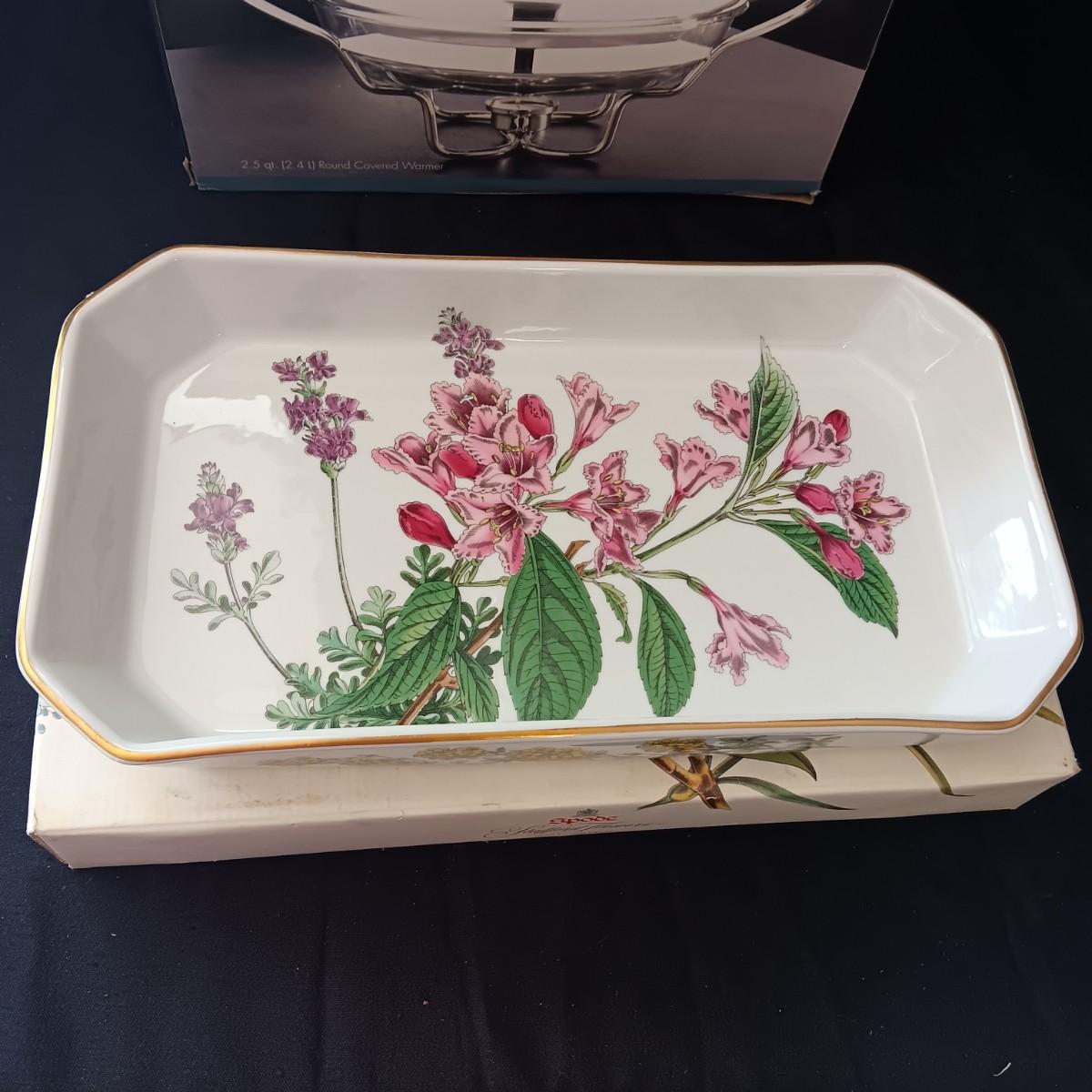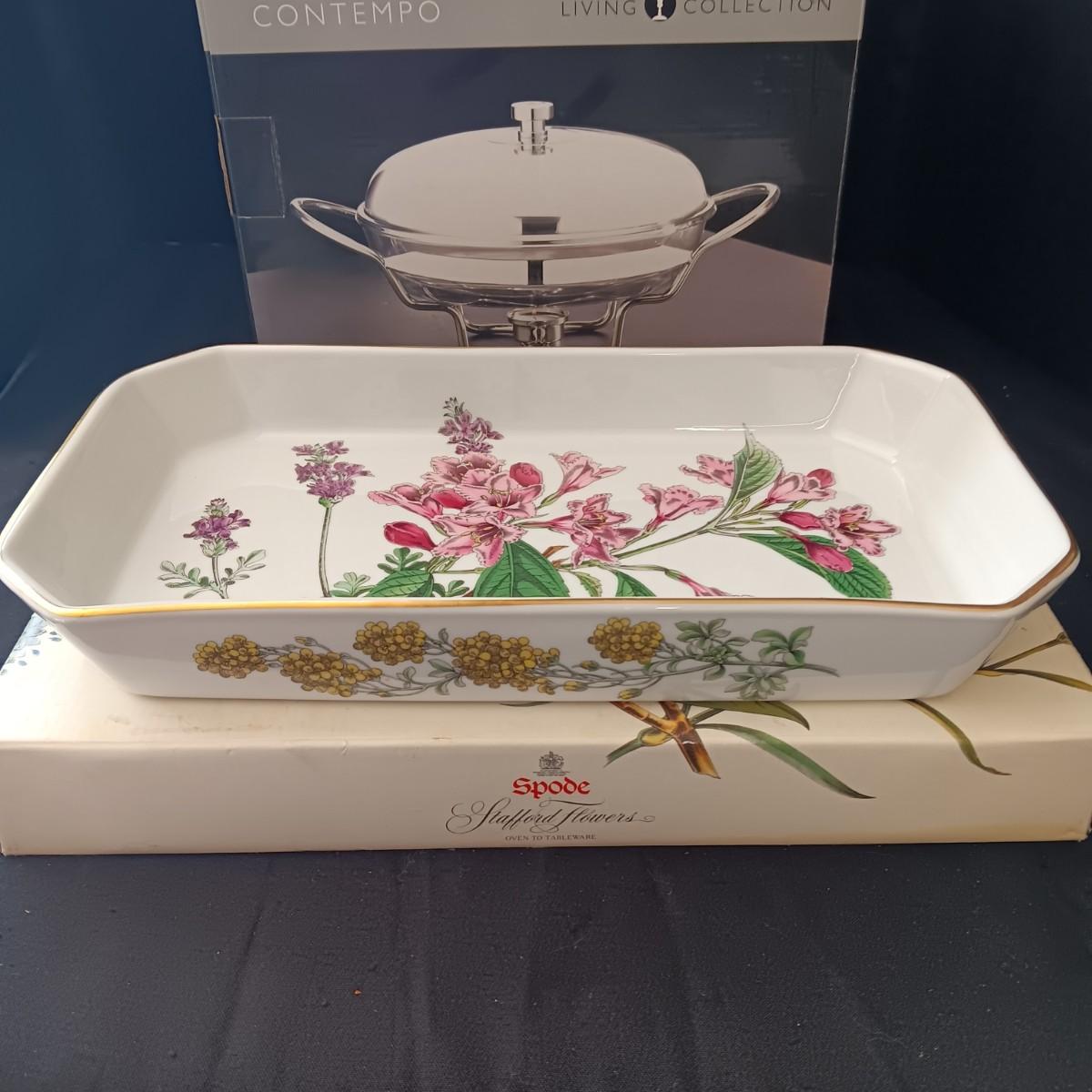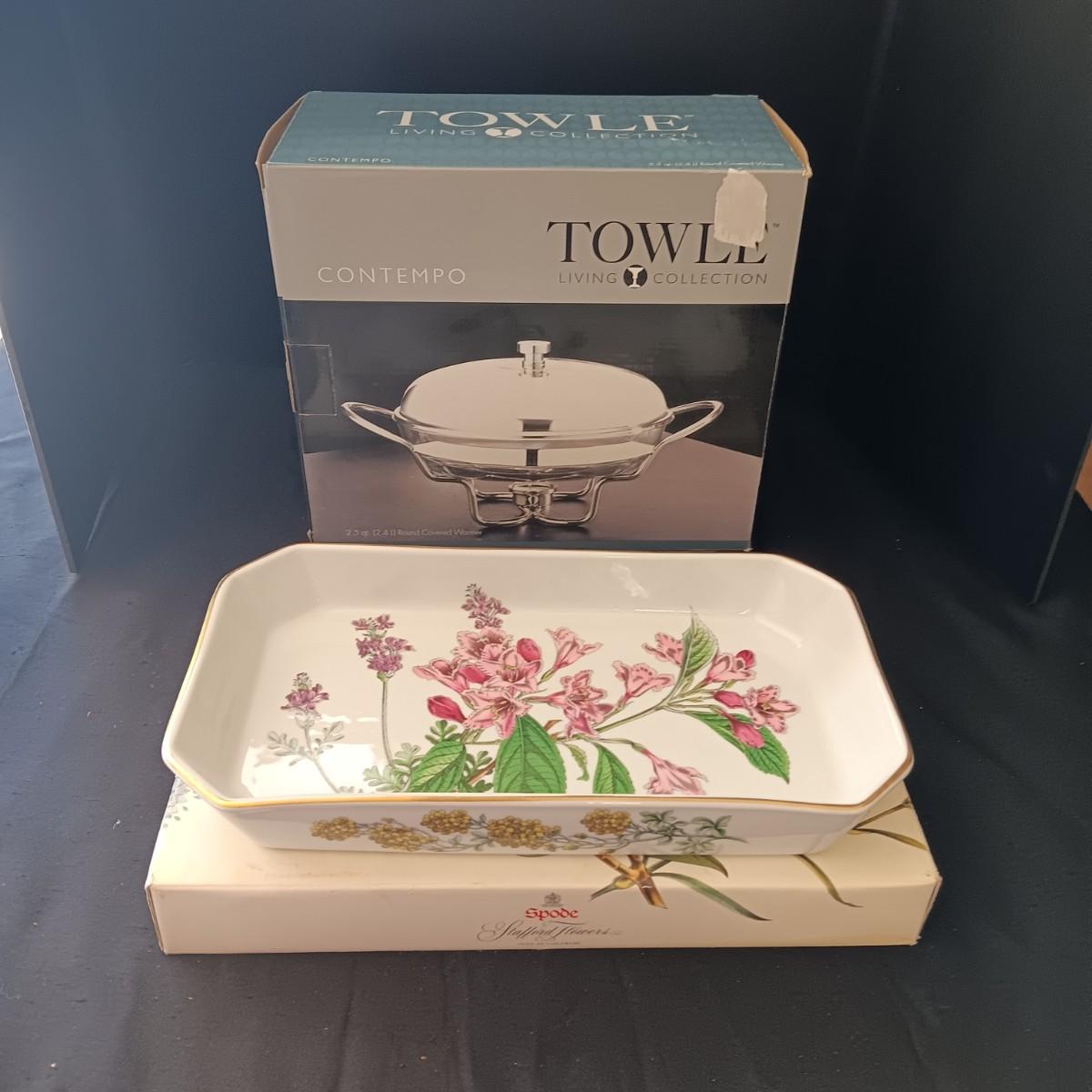 TOWLE 2.5 QUART COVERED WARMER AND A SPODE STAFFORD FLOWERS SERVING DISH