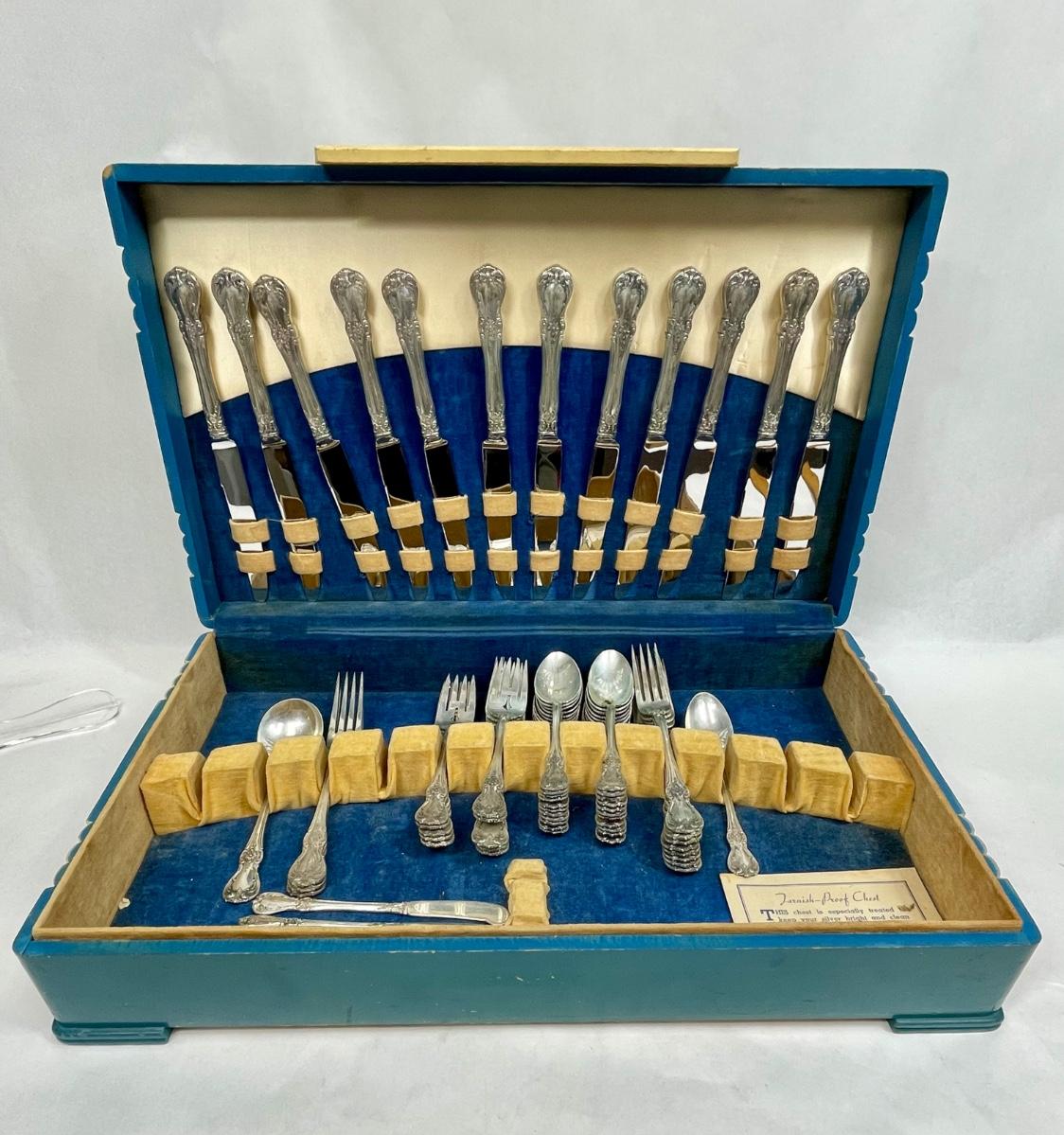 Over 7 pounds of Towle sterling silver flatware in a very cool wood chest made by National Silver Co..