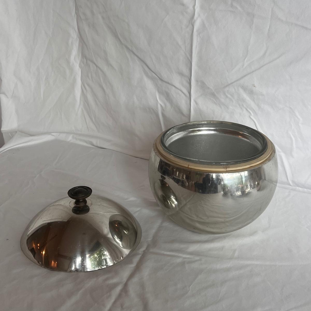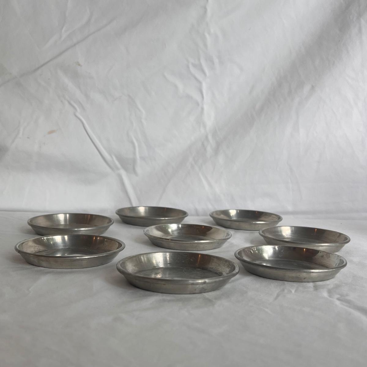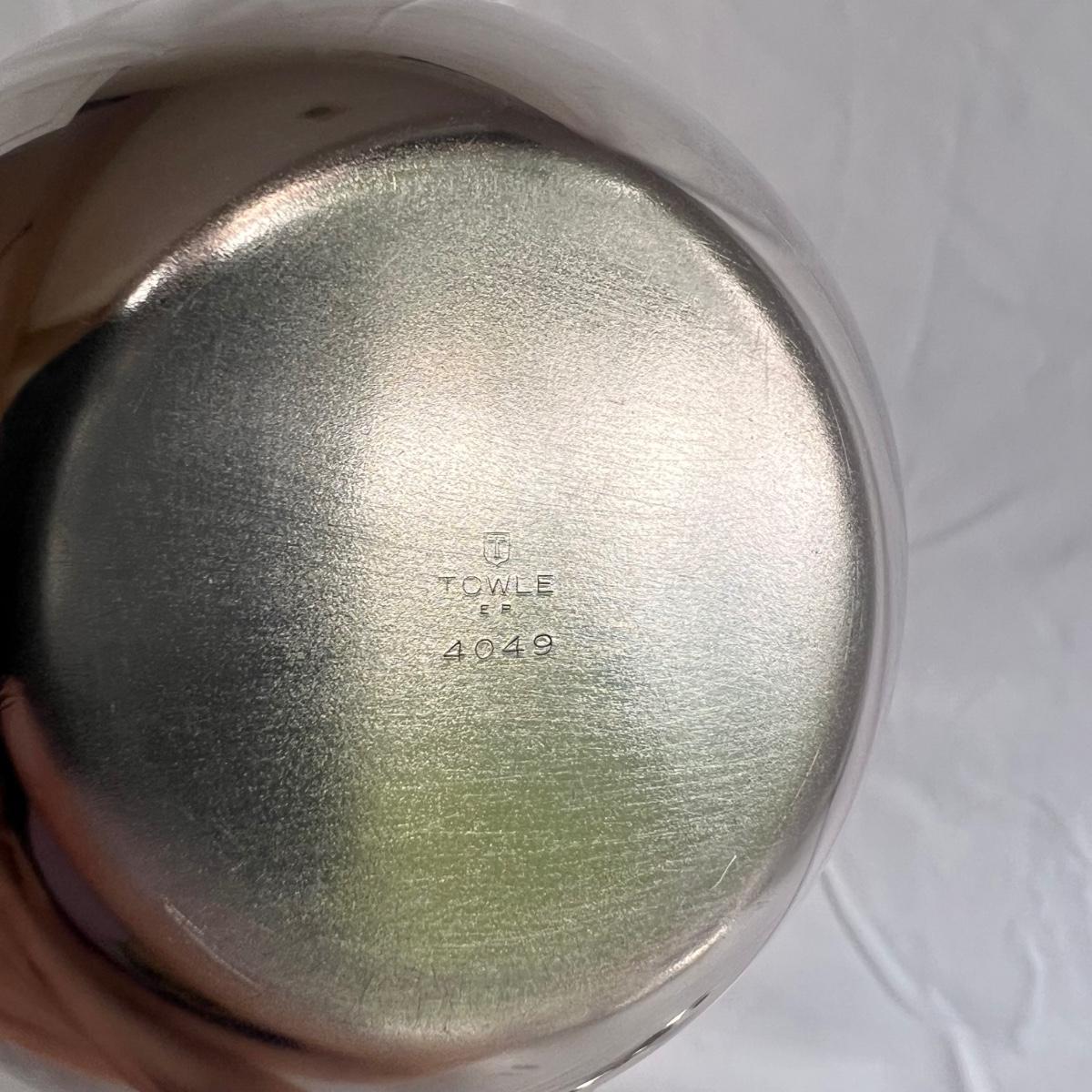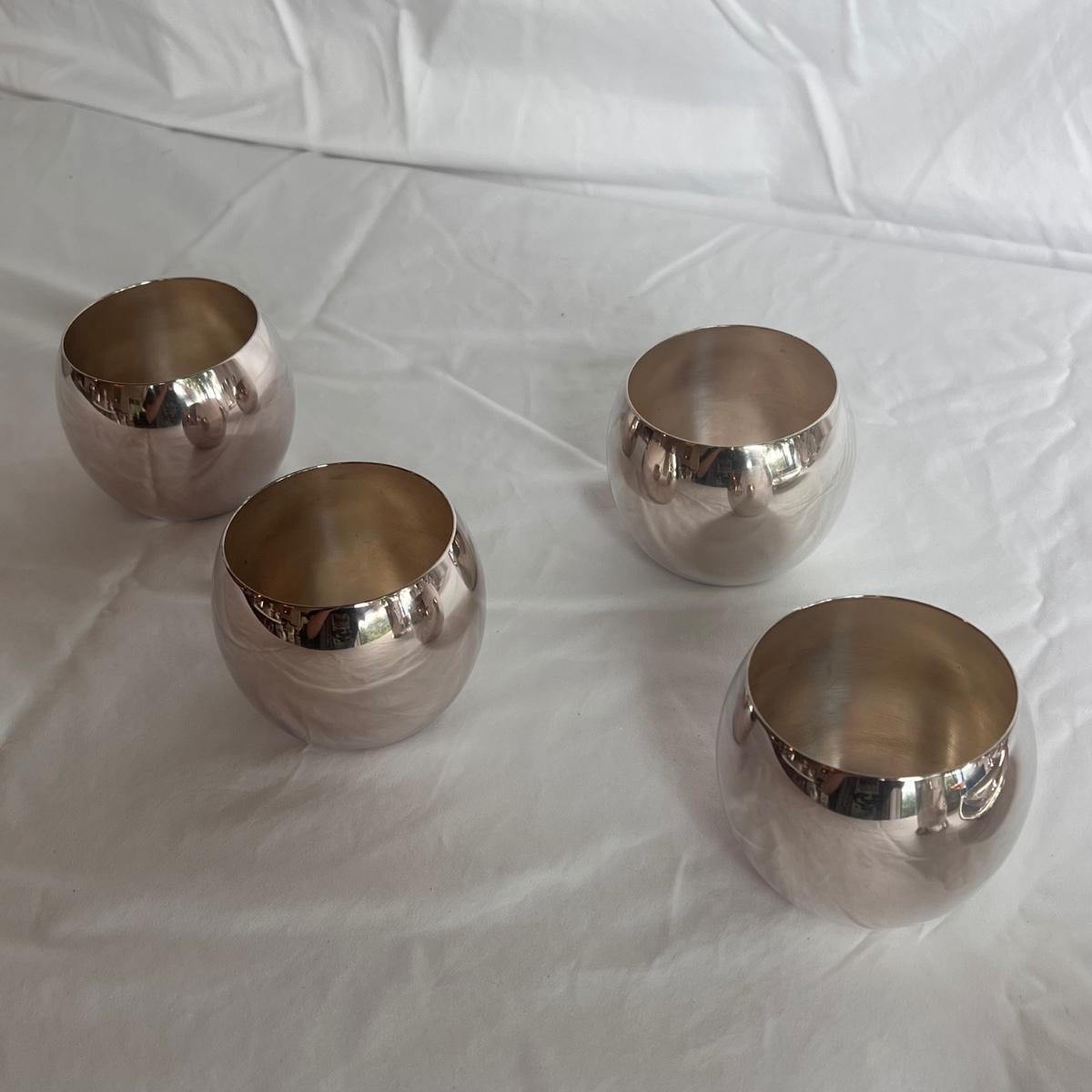 This lot of silver includes four Towle Jefferson style cups, one Fisher tray, one Sheridan cup, eight Towle pewter coasters, one silver ice bucket with a Pyrex insert, and six W&S Blankinton wine glasses. All items are in great condition, despite tarnish from wear - see pictures included. The ice bucket measures 8” x 6.25”H. The coasters measure 4”D x .5”H. Shipping available.