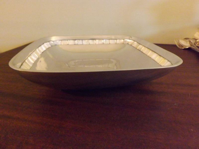 Beautiful Towle silverplate and Mother of Pearl serving tray. Approx. 10". **Please read Terms and Conditions before placing a bid. Pick up is Sunday, September 1, 2019 from 10am to 4pm in Williamstown. All sales are final. All sales are as is, where is. Please review all photos. Any props included in photos are not included in listing. All measurements are approximate.
