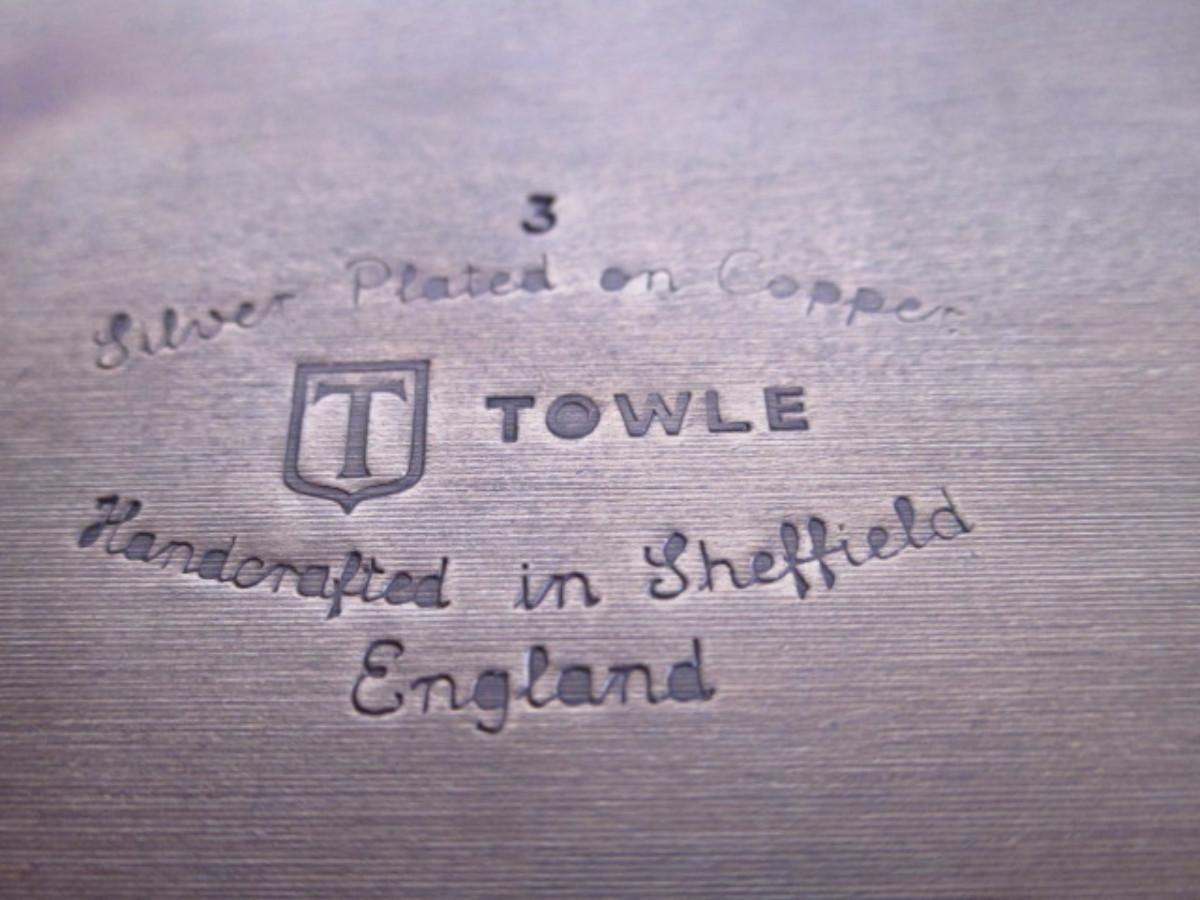 Hand-crafted in Sheffield, England, 15-3/4" long x 9-3/4" wide x 1-1/4' rise excluding feet
