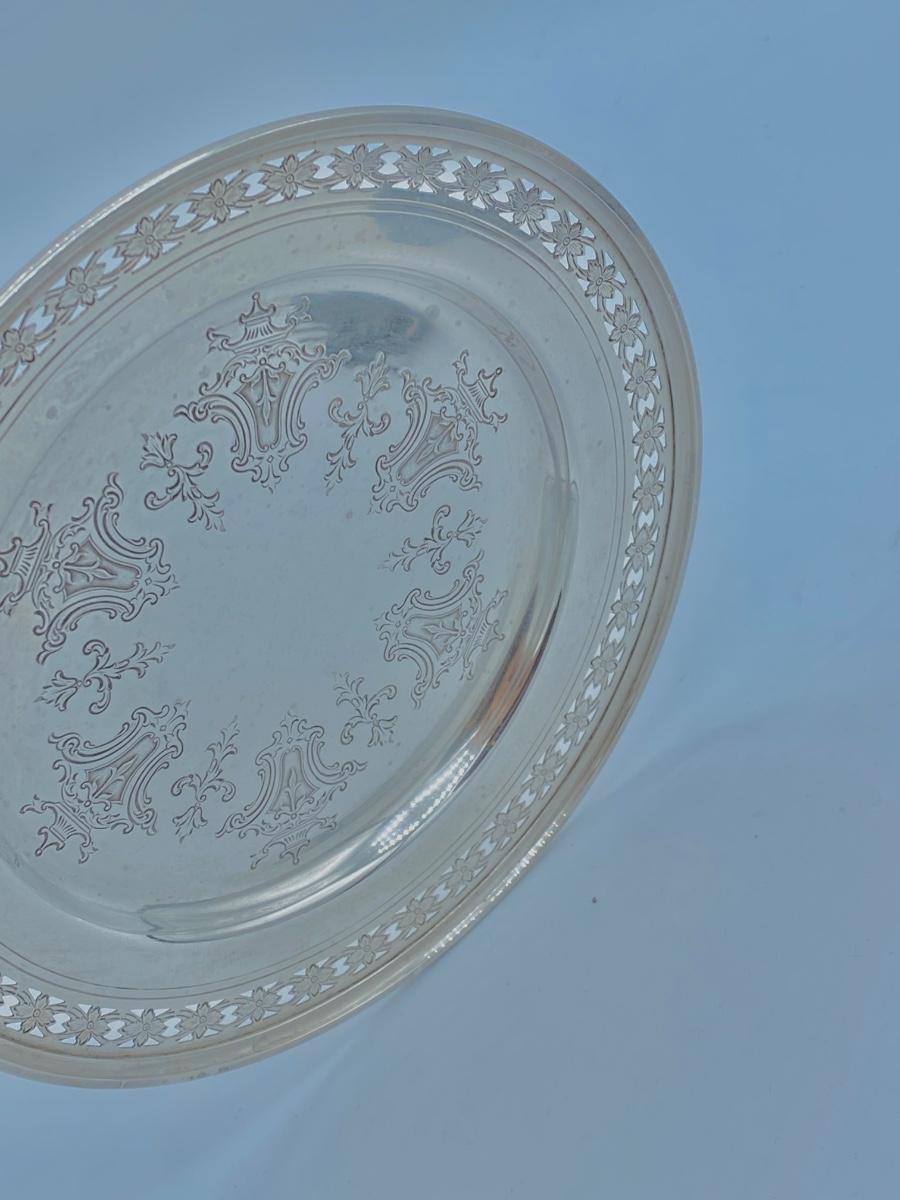 Nice small 6” pierced plated with decorative design. Marked Towle sterling 5433, patented Oct. 15, 1918