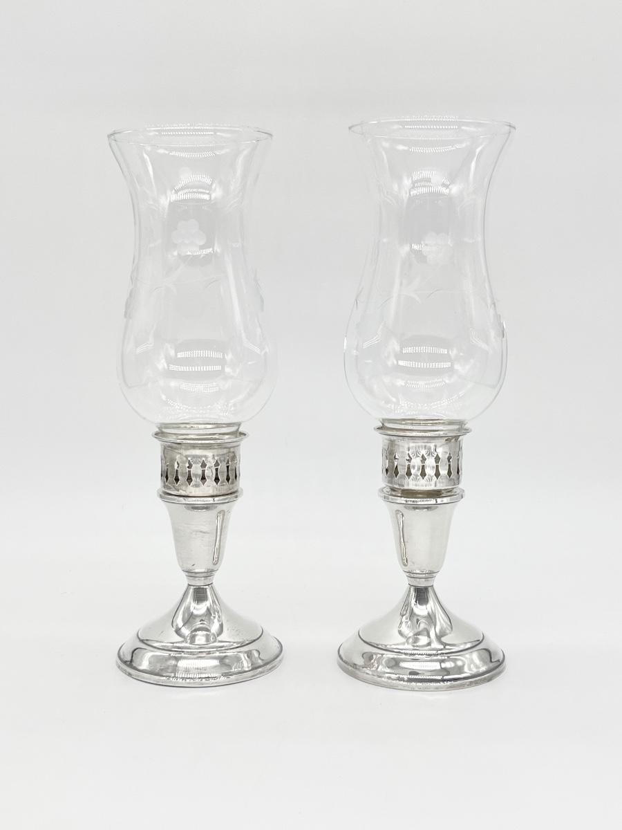 TOWLE ~ Sterling ~ Vtg. 512 Sterling Weighted Hurricane Lamps ~ Set Of Two (2)