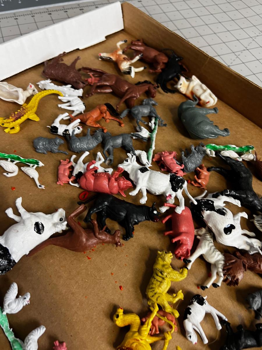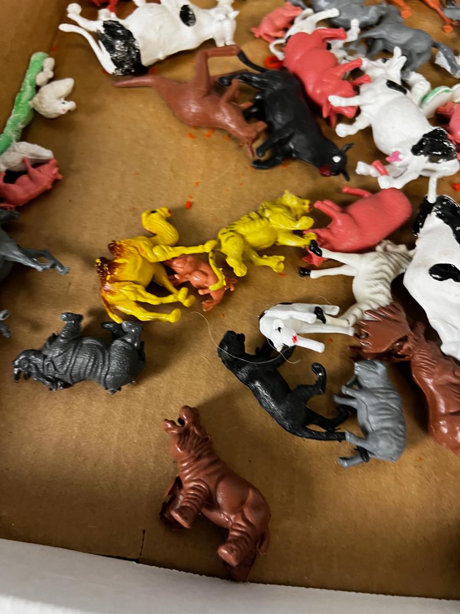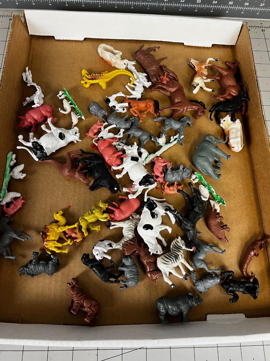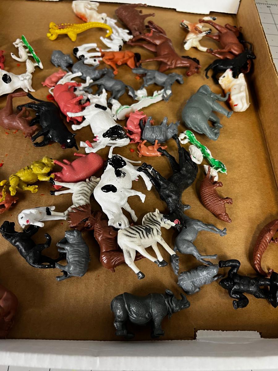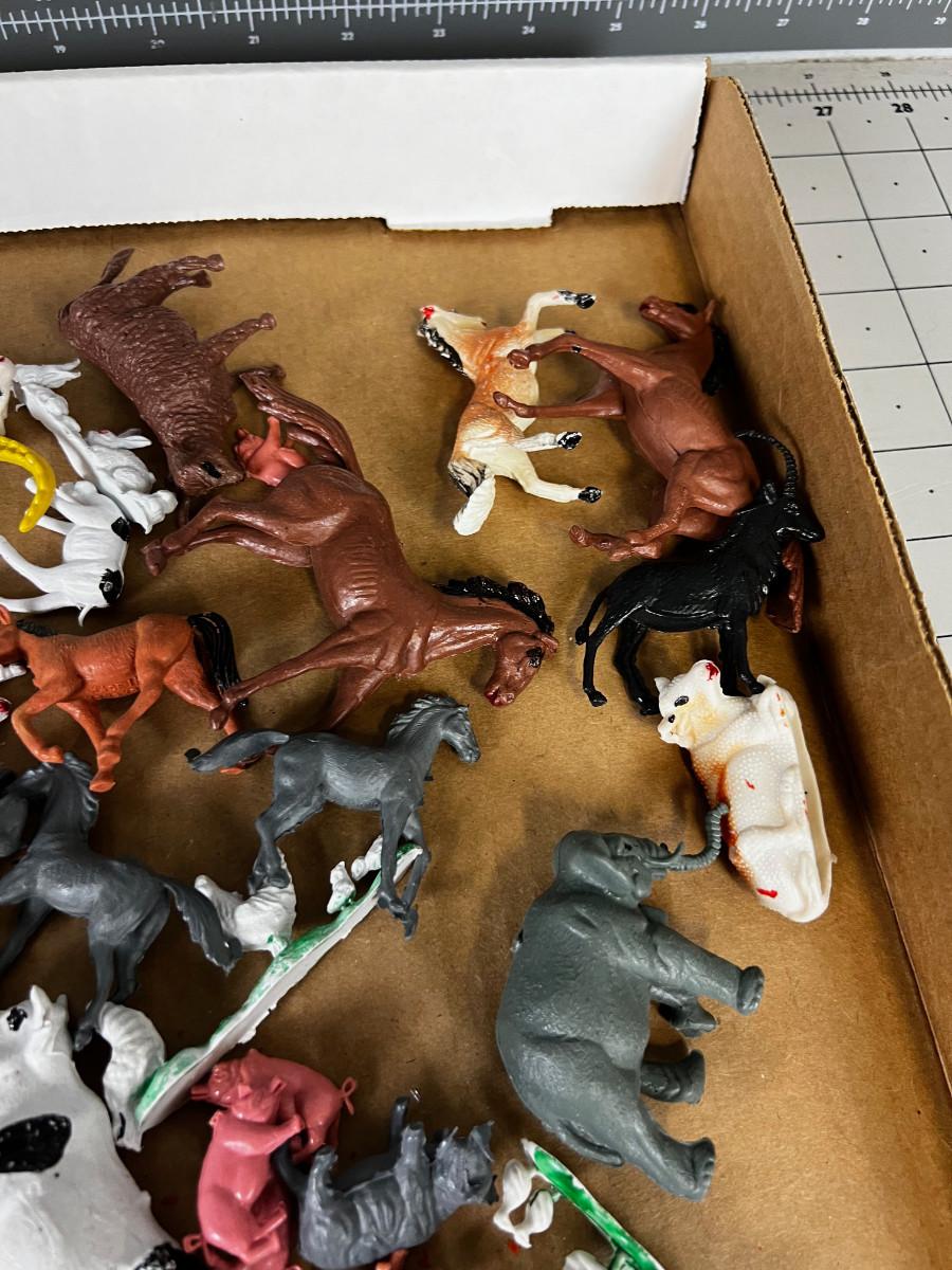 Toy Animals, Plastic: Horses, Sheep, Cow Plus Jungle Animals VINTAGE 1970's