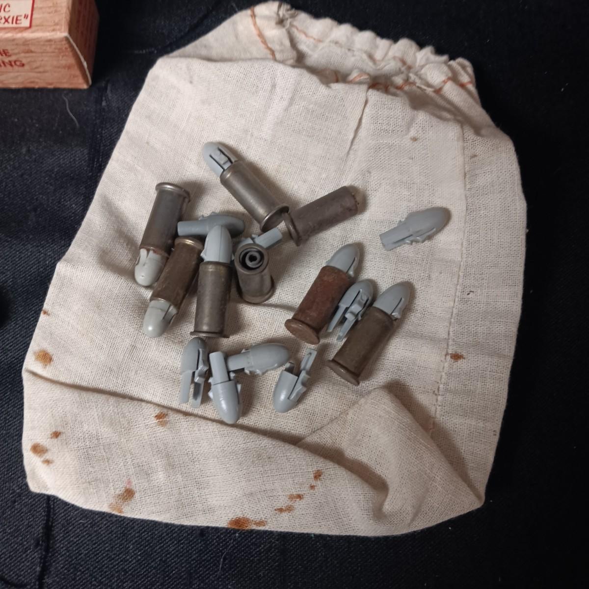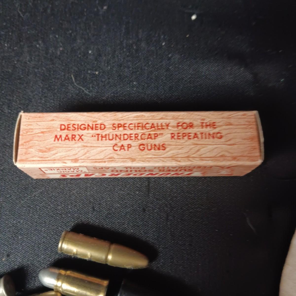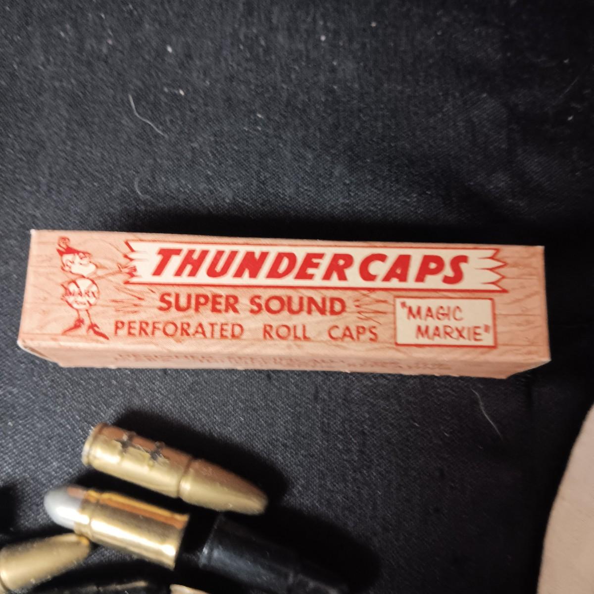 TOY BRASS AND PLASTIC BULLETS AND A BOX OF THUNDERCAPS