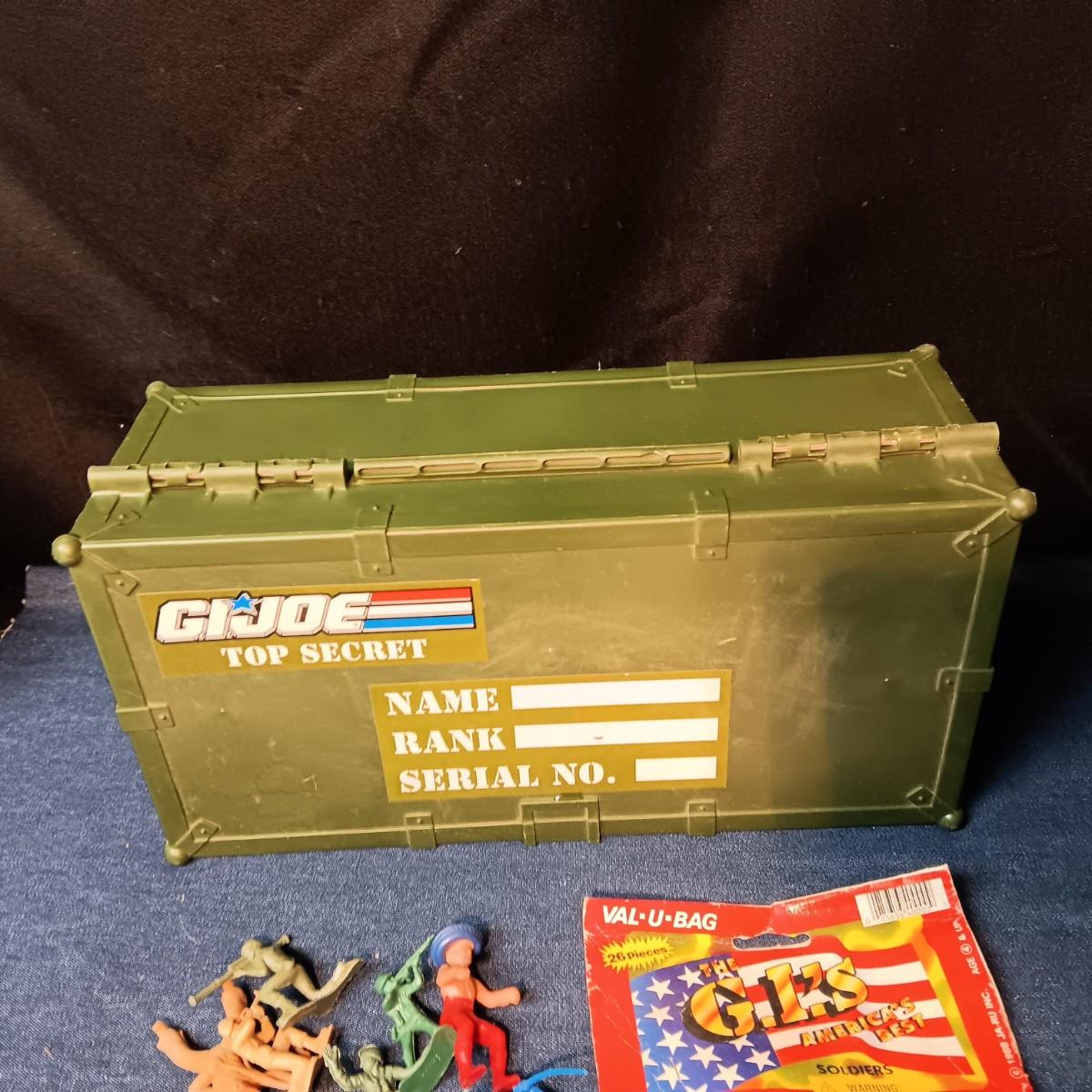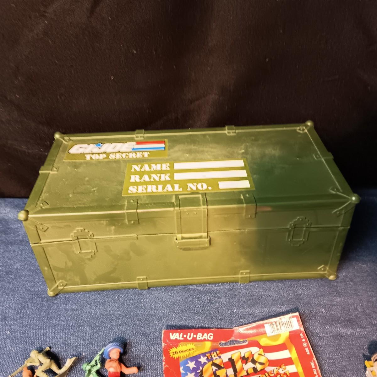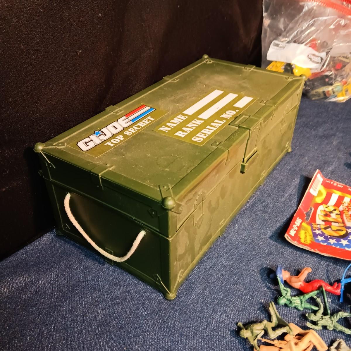 TOY GI JOE FOOT LOCKER, ARMY MEN AND METAL MILITARY VEHICLES