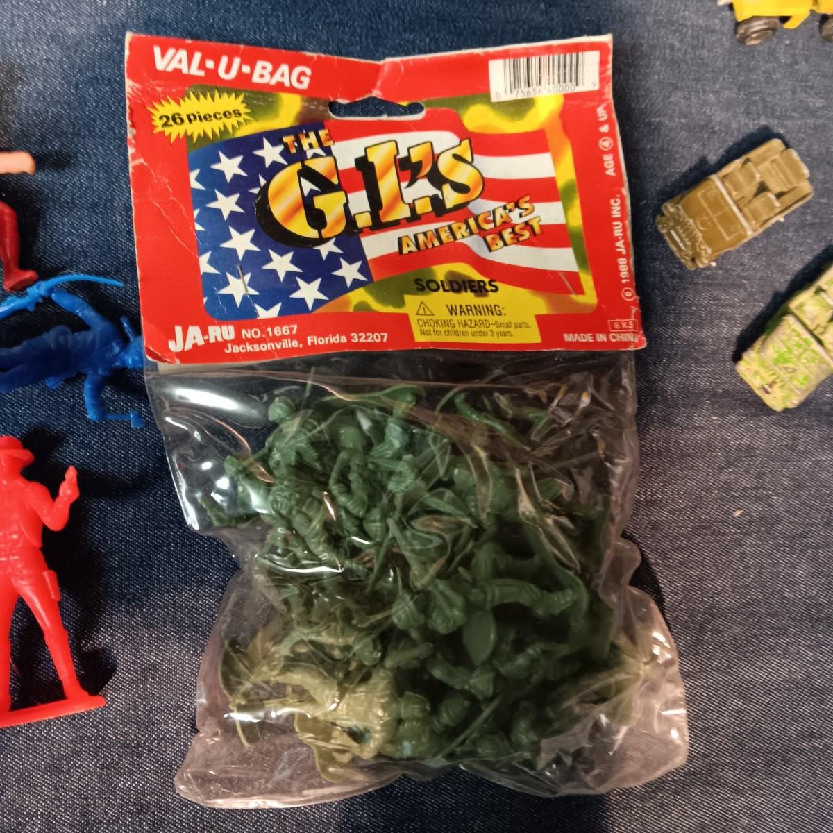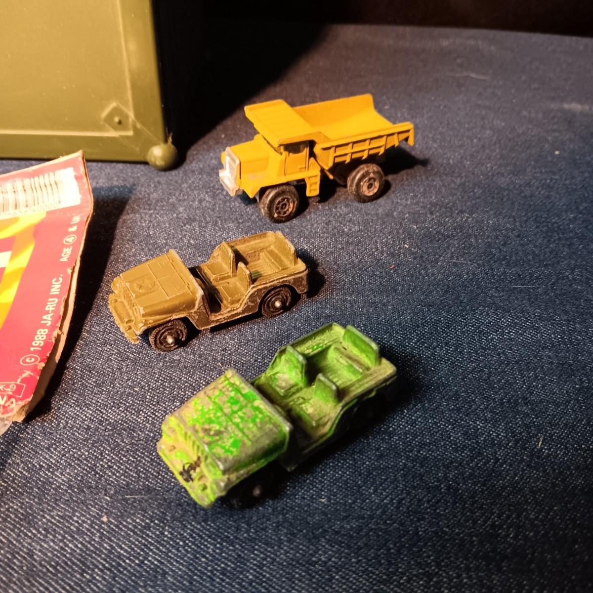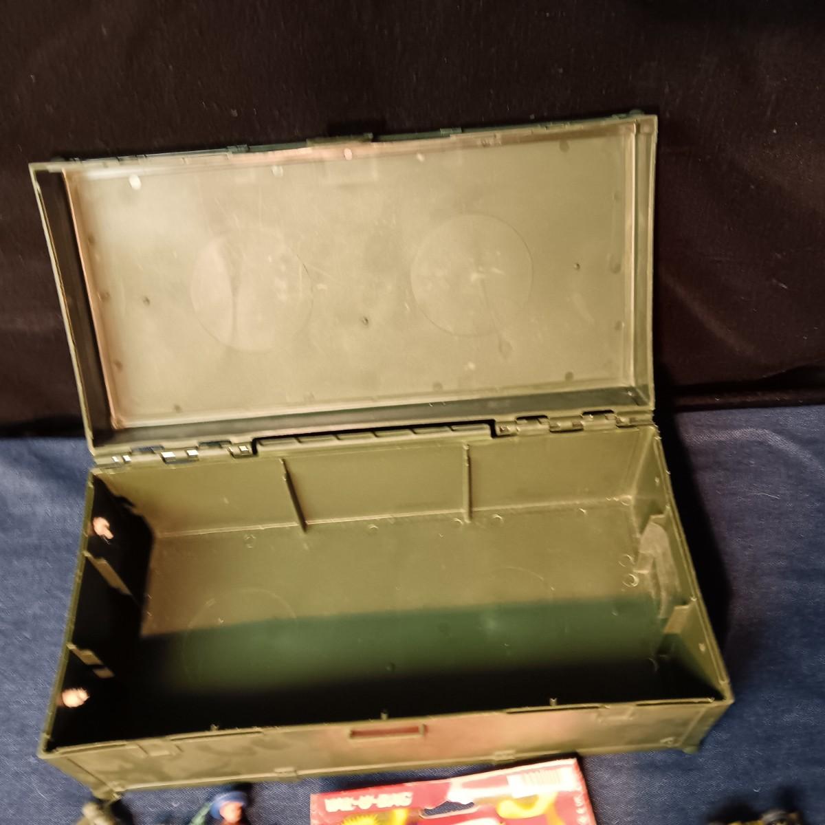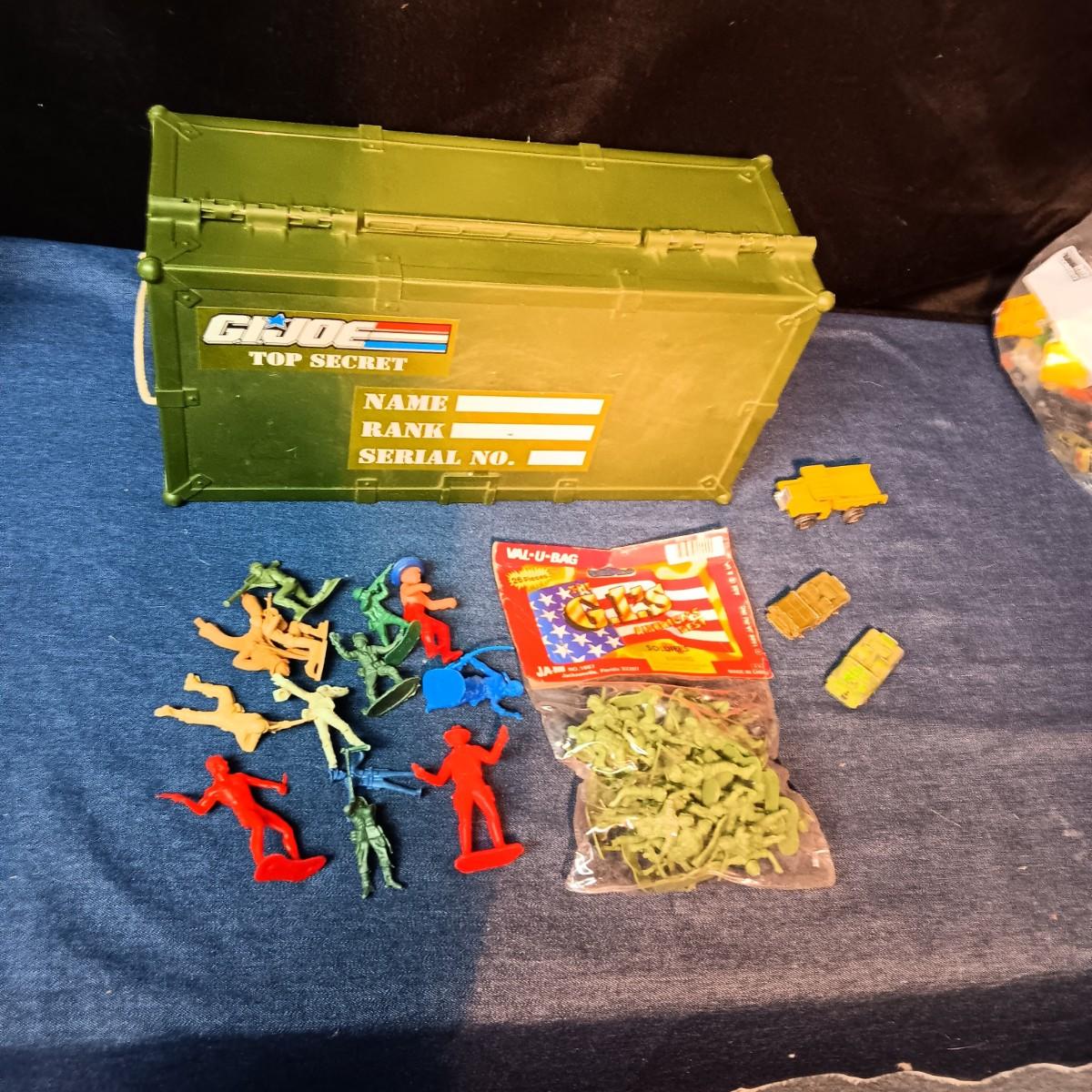 TOY GI JOE FOOT LOCKER, ARMY MEN AND METAL MILITARY VEHICLES