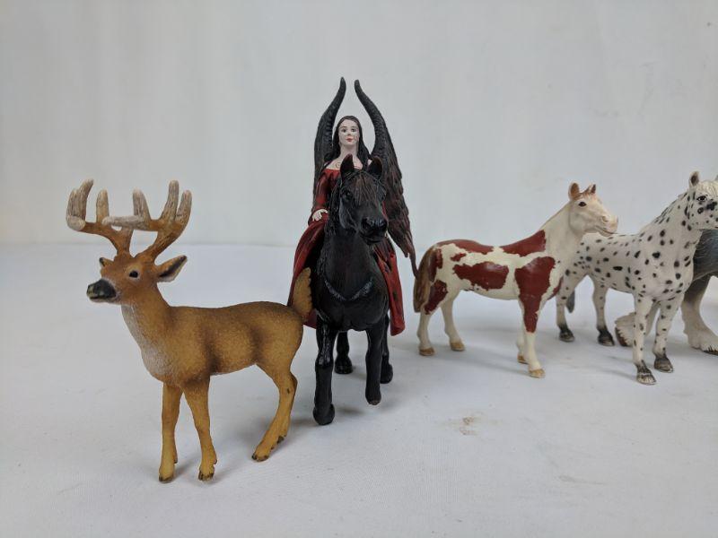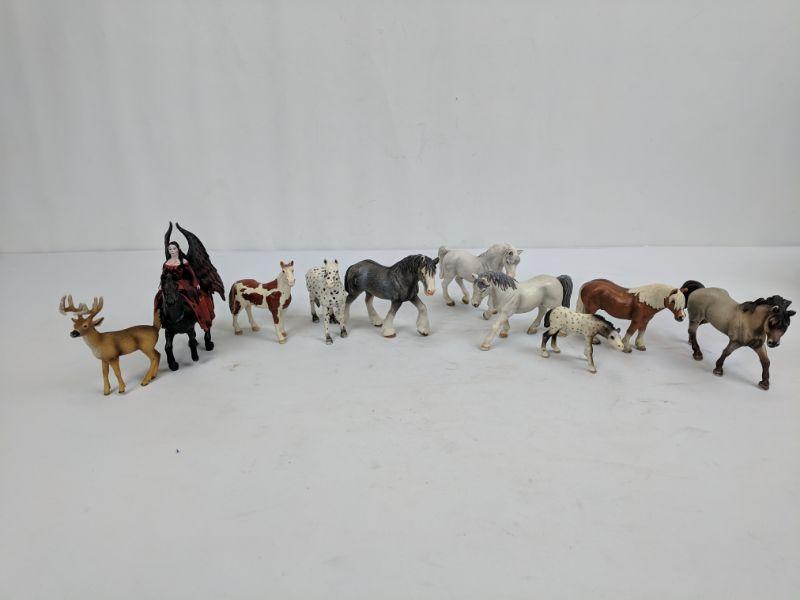 Toy Horse Lot, 9 Horse with 1 Elf Rider & Stag Figurines