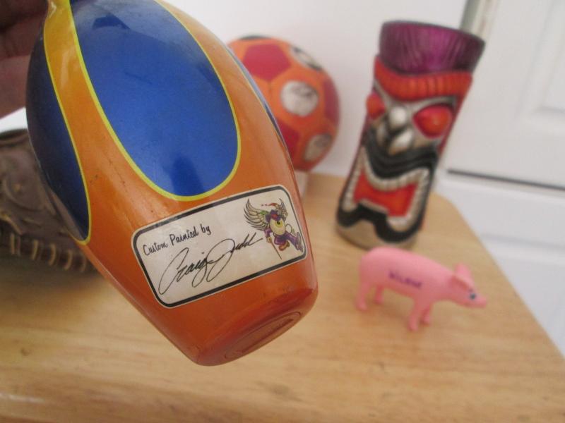 Three stooges ball, motorcycle, Craig Judd Hand painted Tiki Blue Stripe
