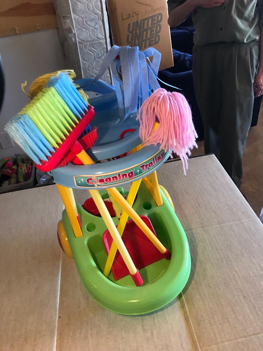 Teach those kids early to clean their rooms!!! Great Little Tikes cart.