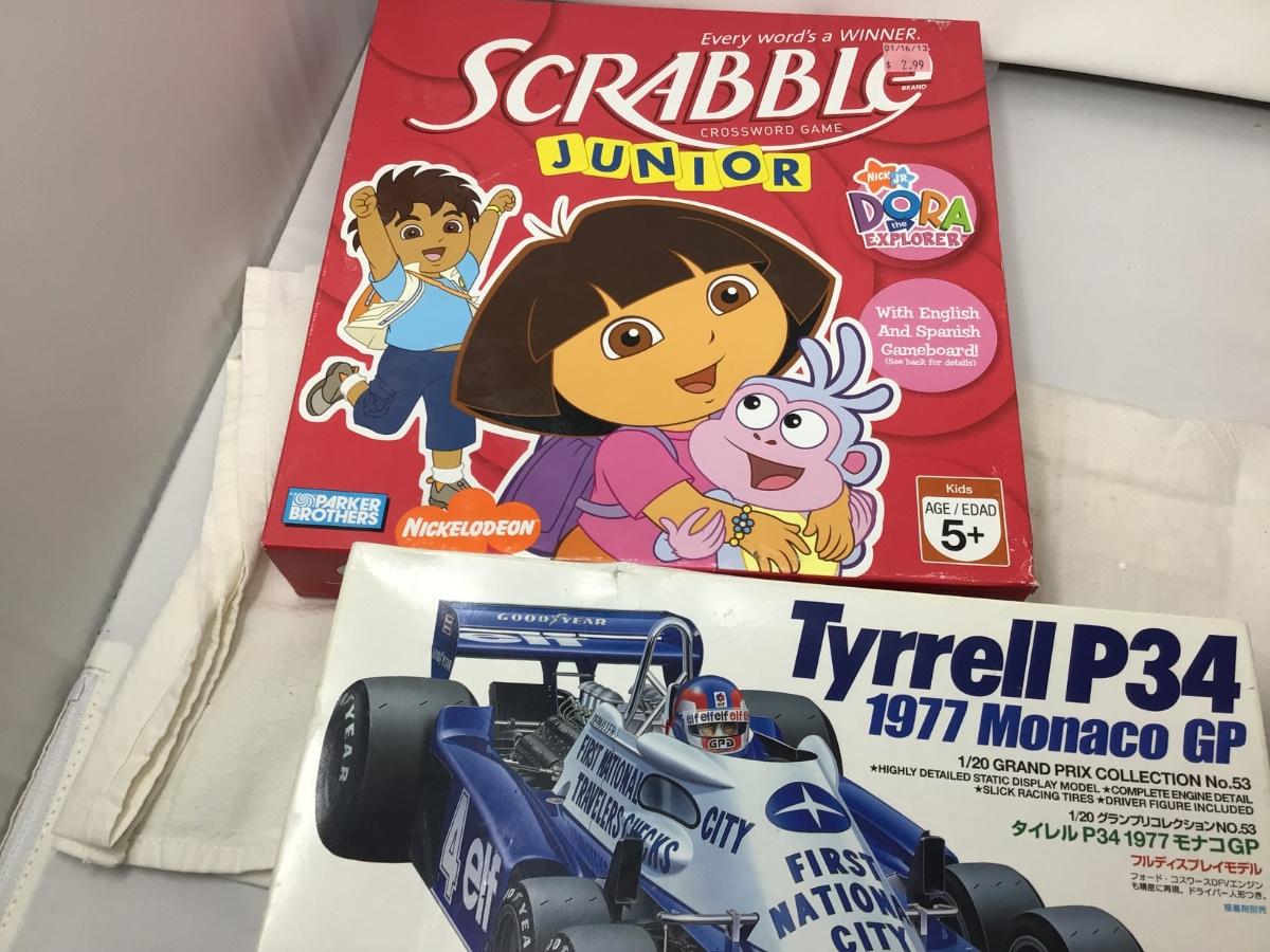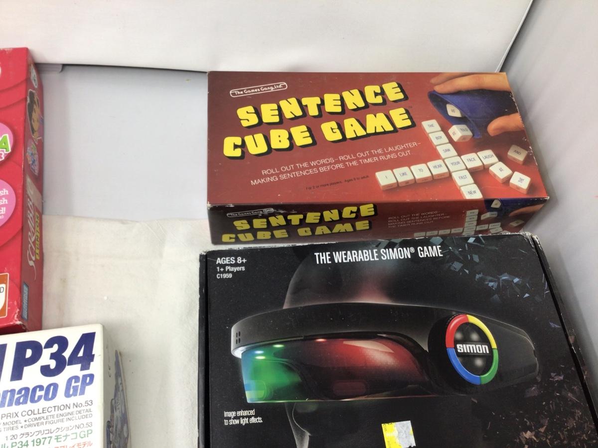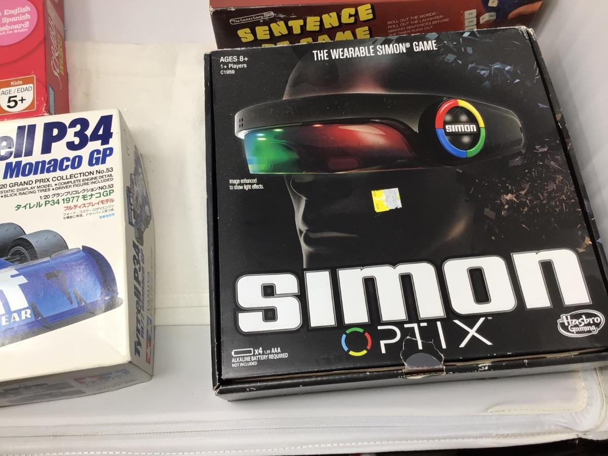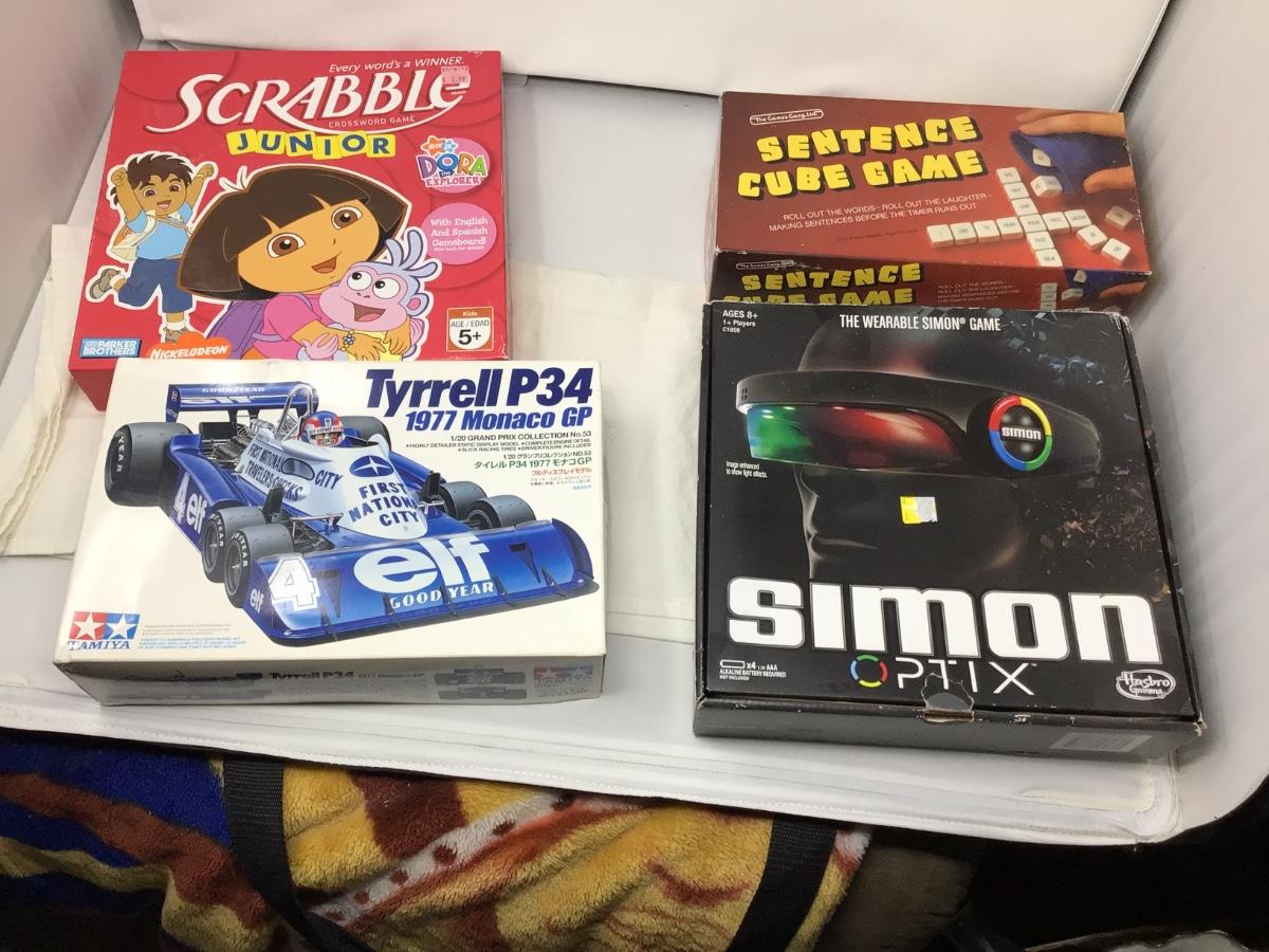 Junior Scrabble, Sentence Cube Game, Simon Optix, Tyrell p34 model. Looks like they have the pieces but can’t guarantee.