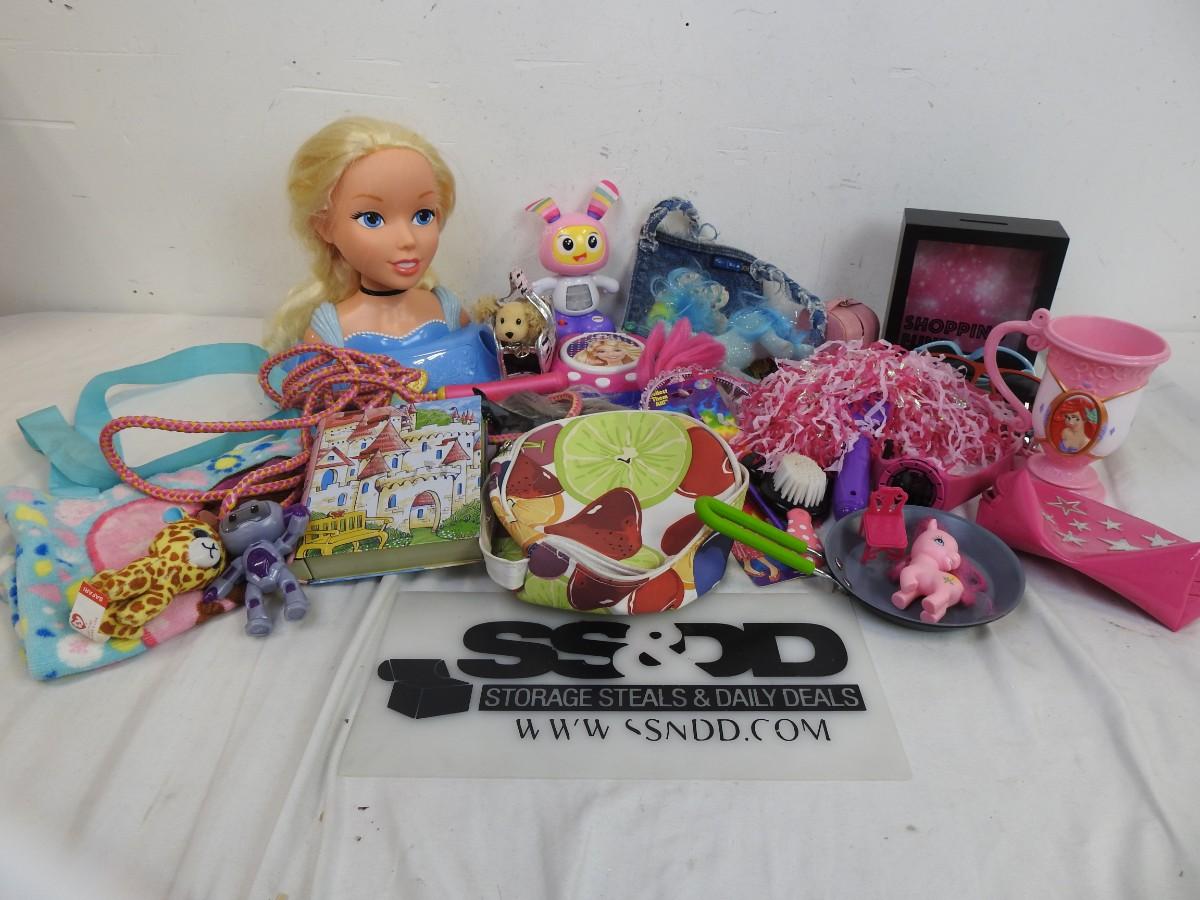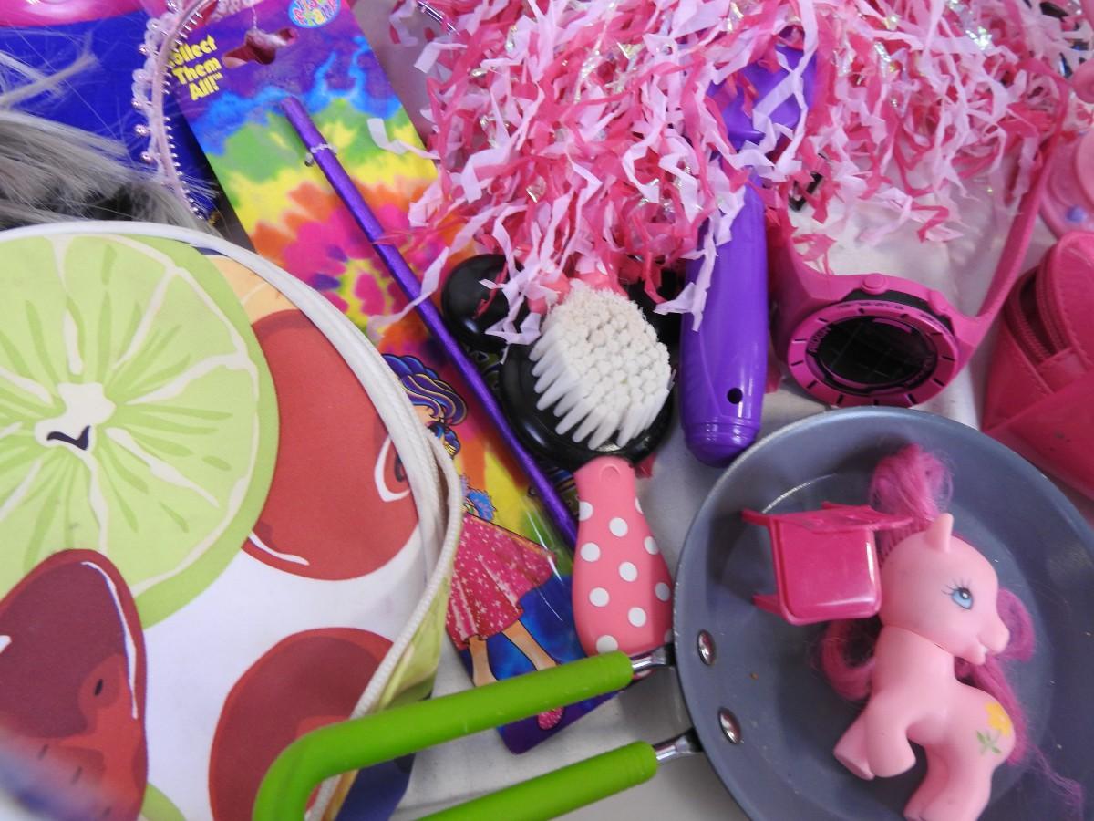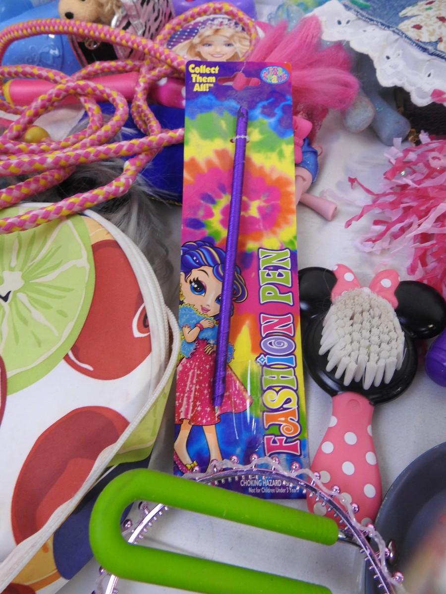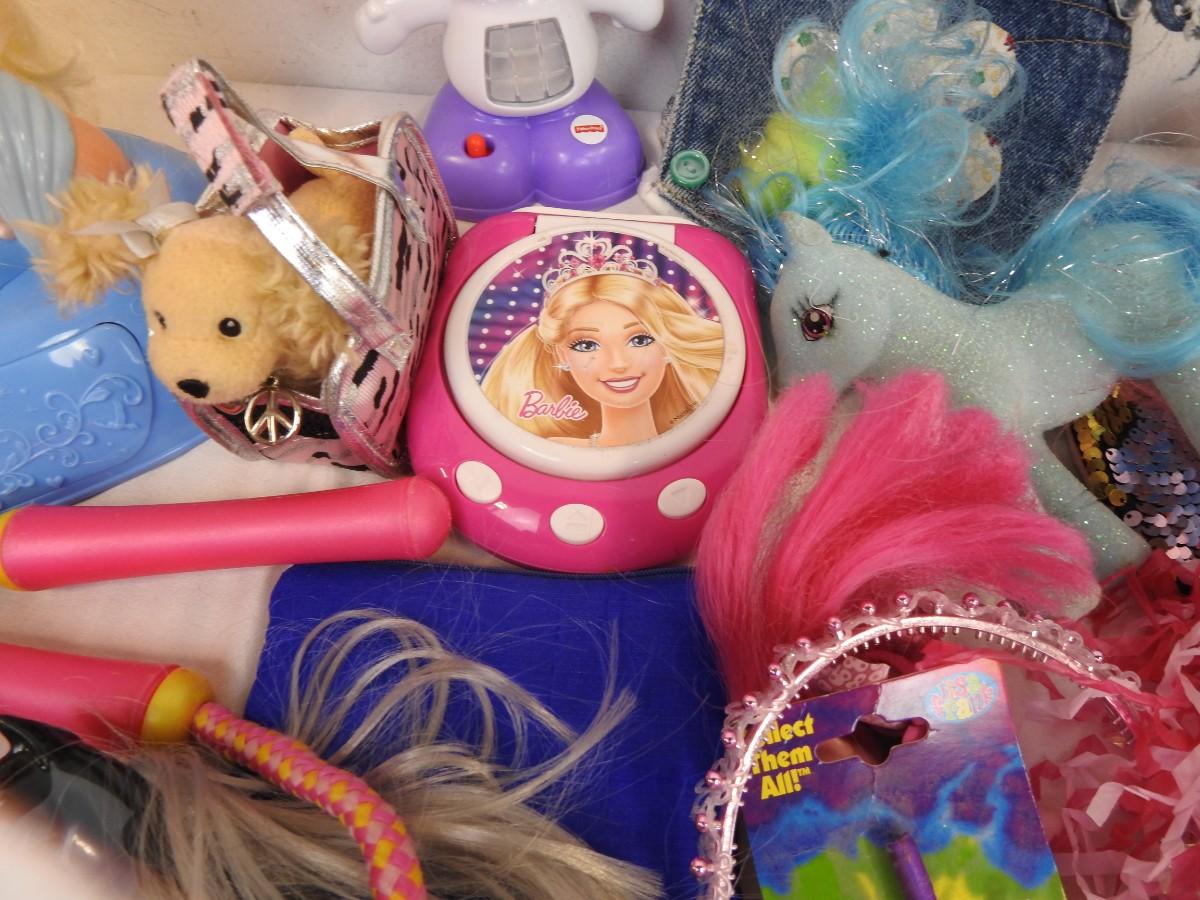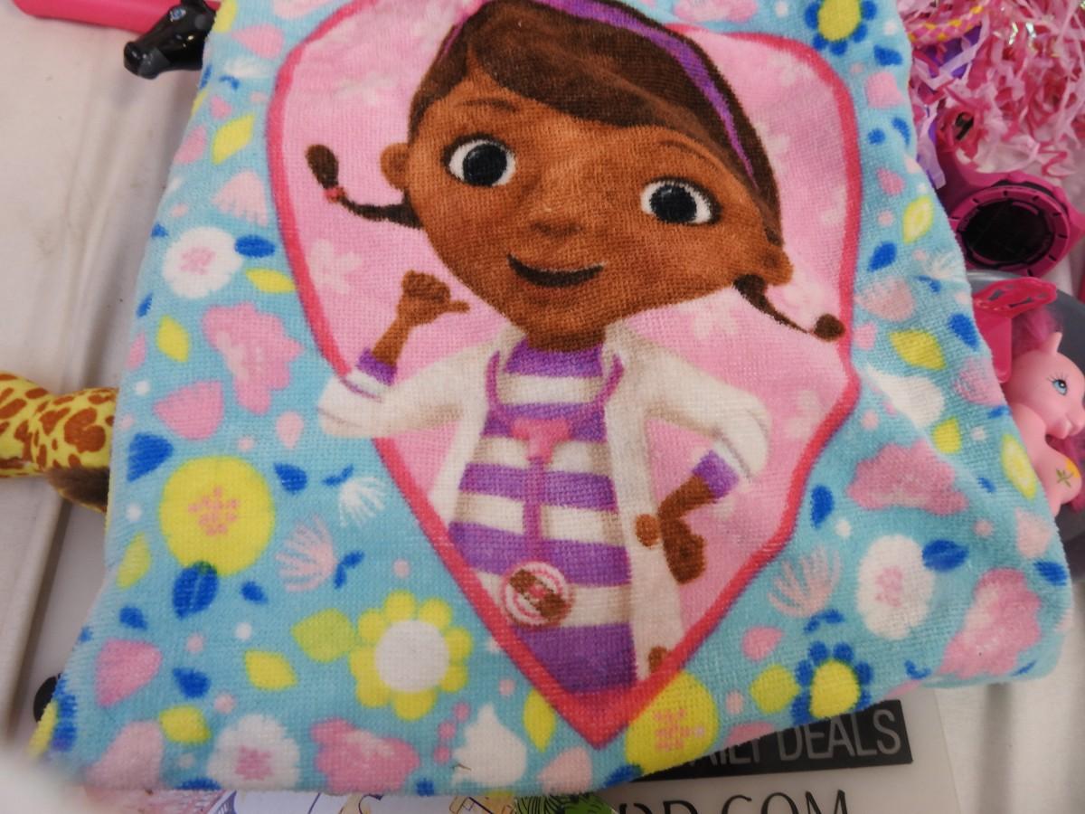 Toy lot 20+ pcs: Barbie, Doc McStuffin, Lisa Frank, denim purse, figurines,