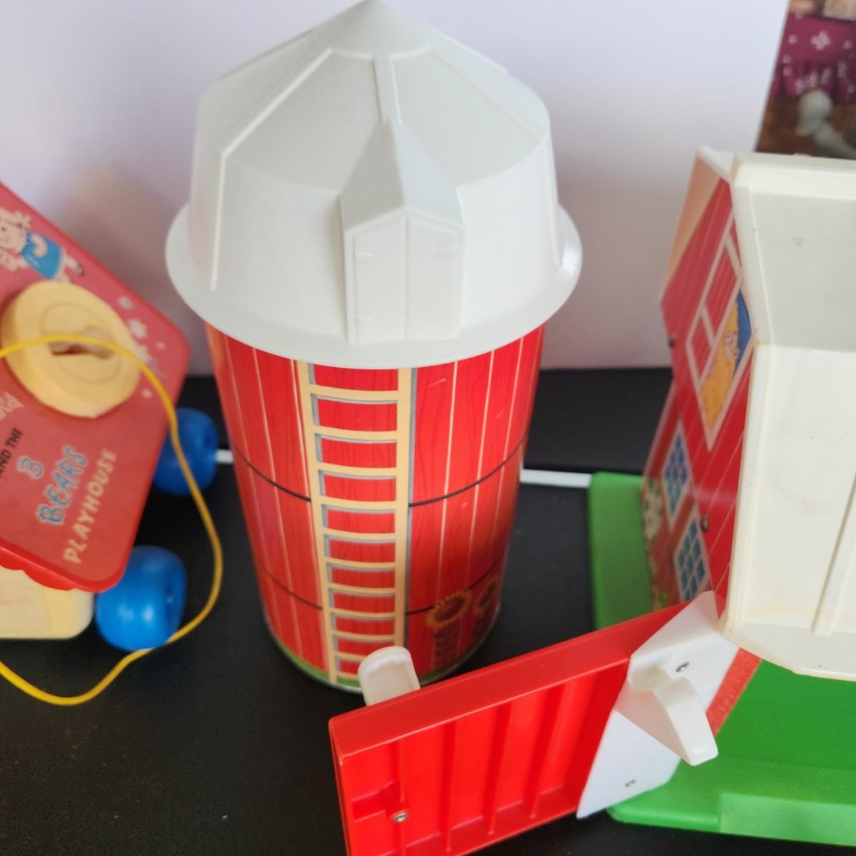 Toy Lot Fisher Price Barn , Goldilocks playhouse, Peek A Boo Screen, Peanuts Snoopy Jack in the Box