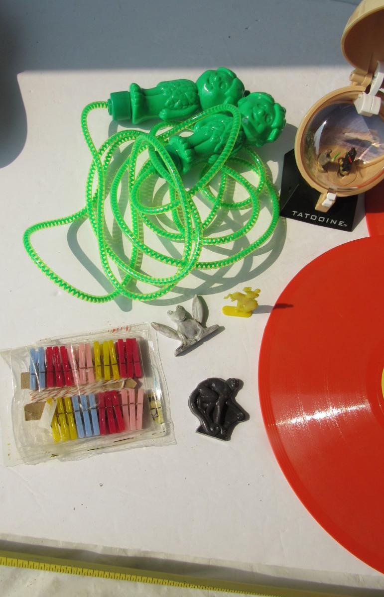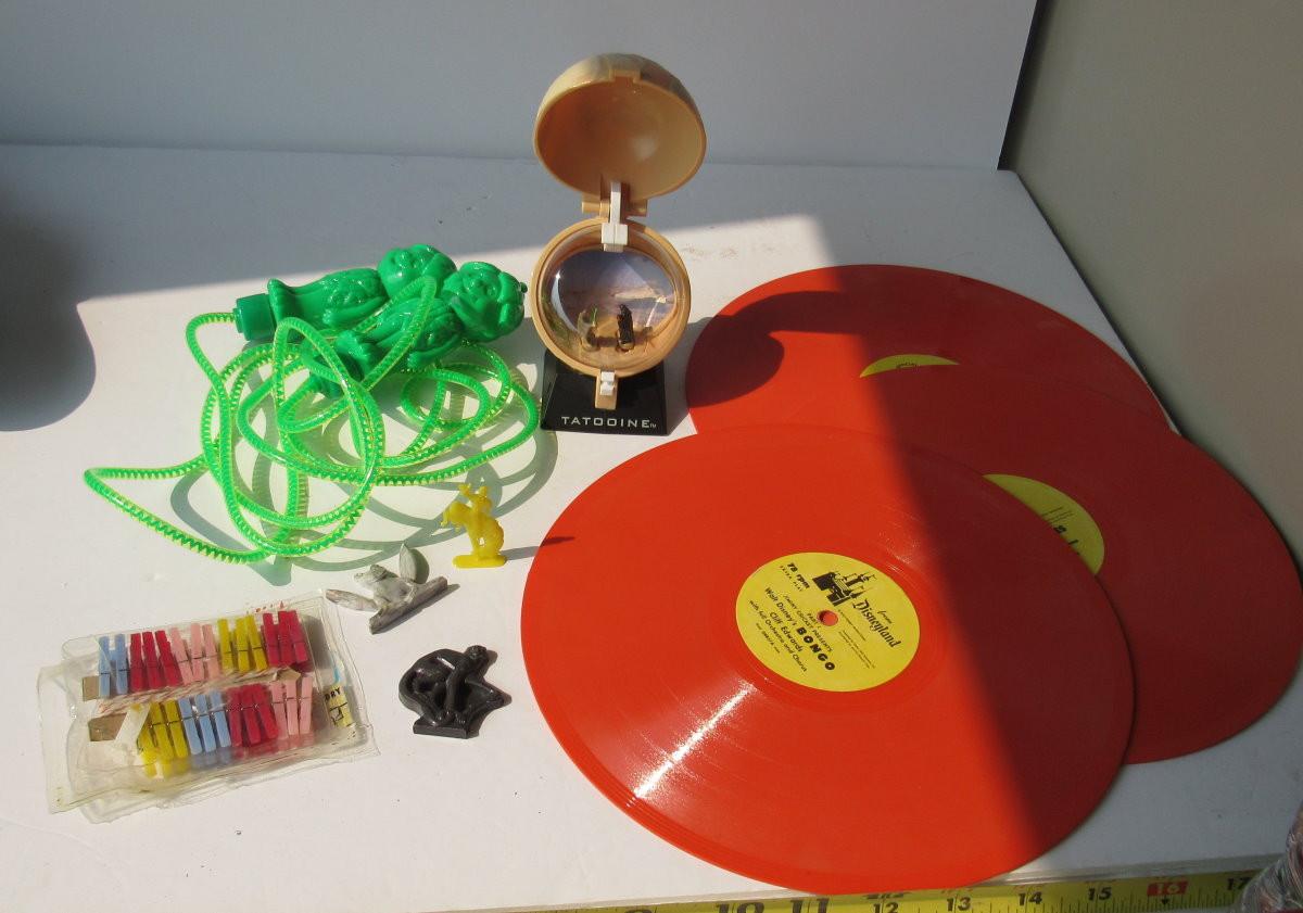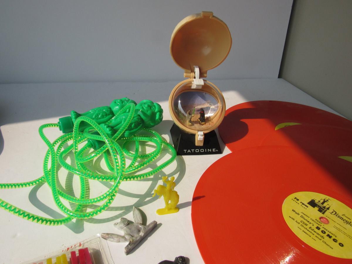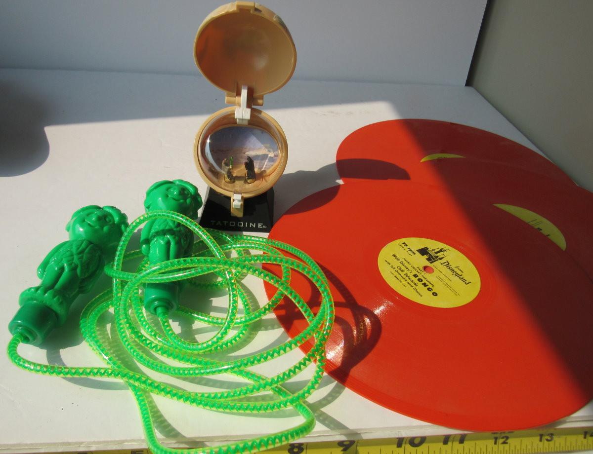 Lot 347: Toy Lot, Little Bean Sprout Jump Rope, Disney Records, Cracker Jack Toys, Tatooine Toy