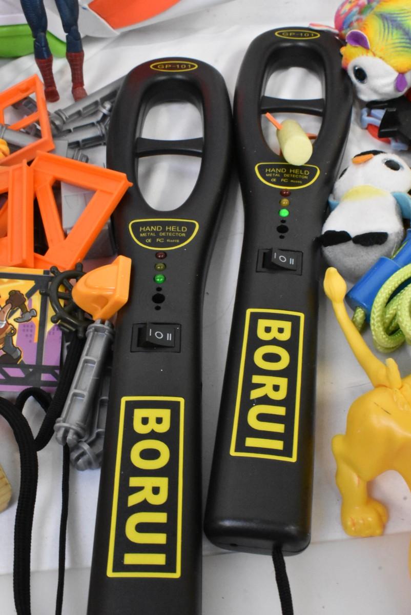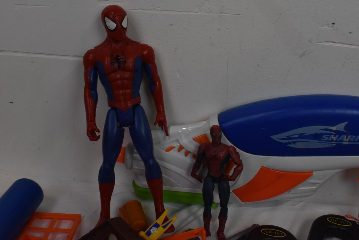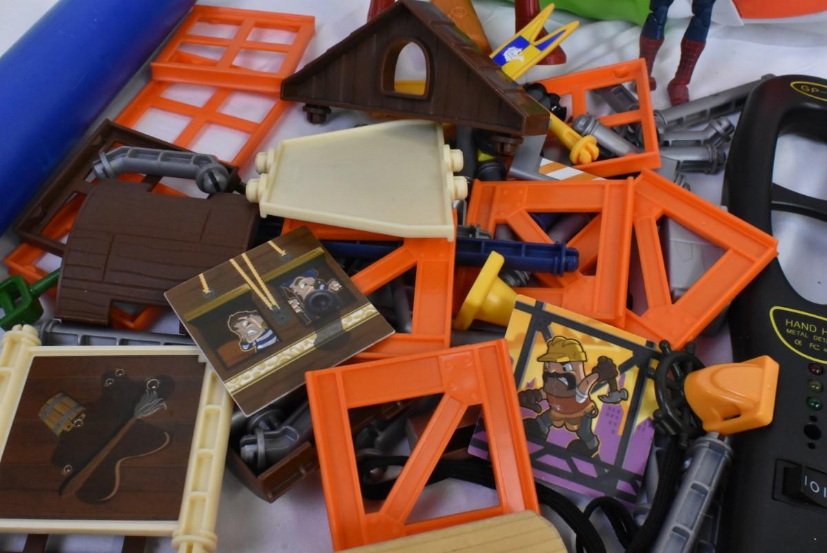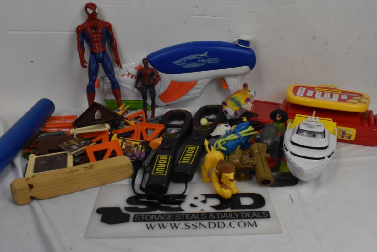 Toy lot: Spiderman, metal detector-turns on, cash register, train whistle