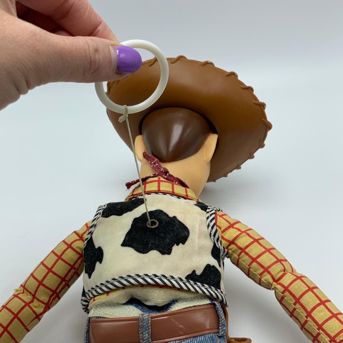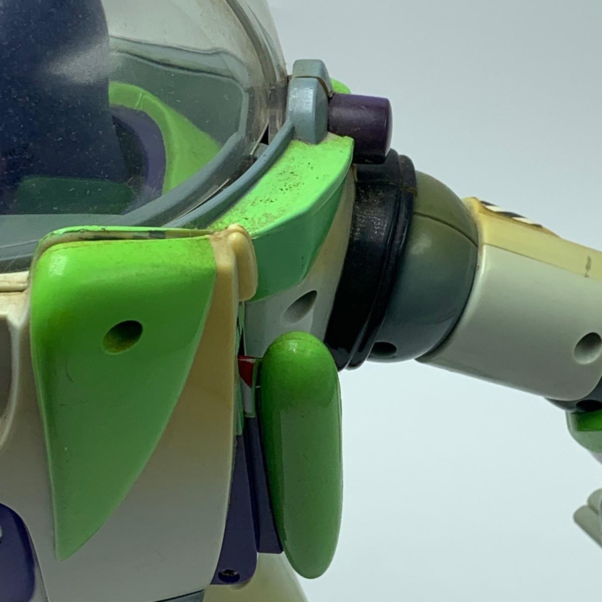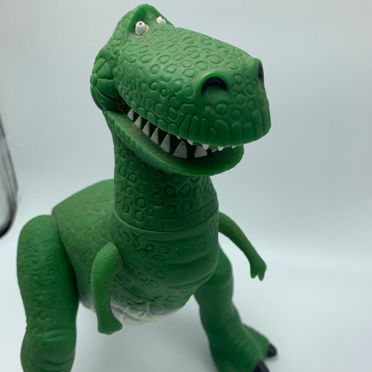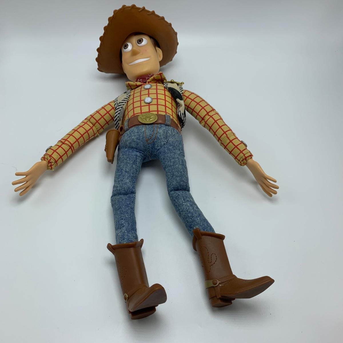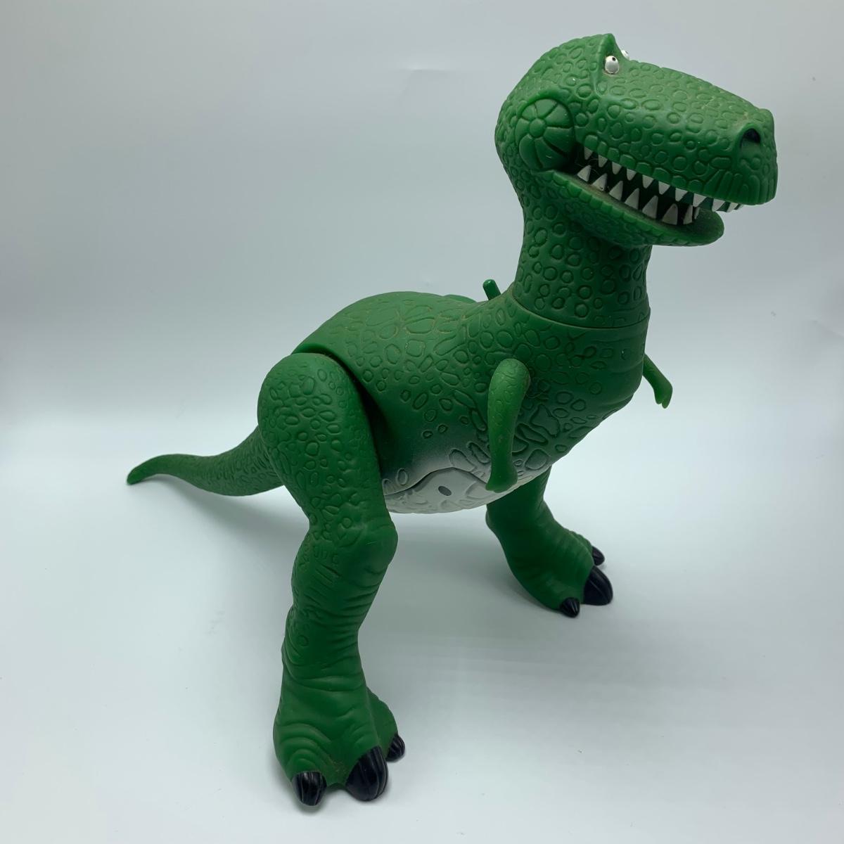 Three big and six small Toy Story character toys and figurines. All are plastic except Woody’s body is plush and fabric. The electronic toys did not function when tested and likely need their batteries replaced. The tallest item is Buzz Lightyear at 12.5” tall and the smallest is the alien at 2.5” tall.