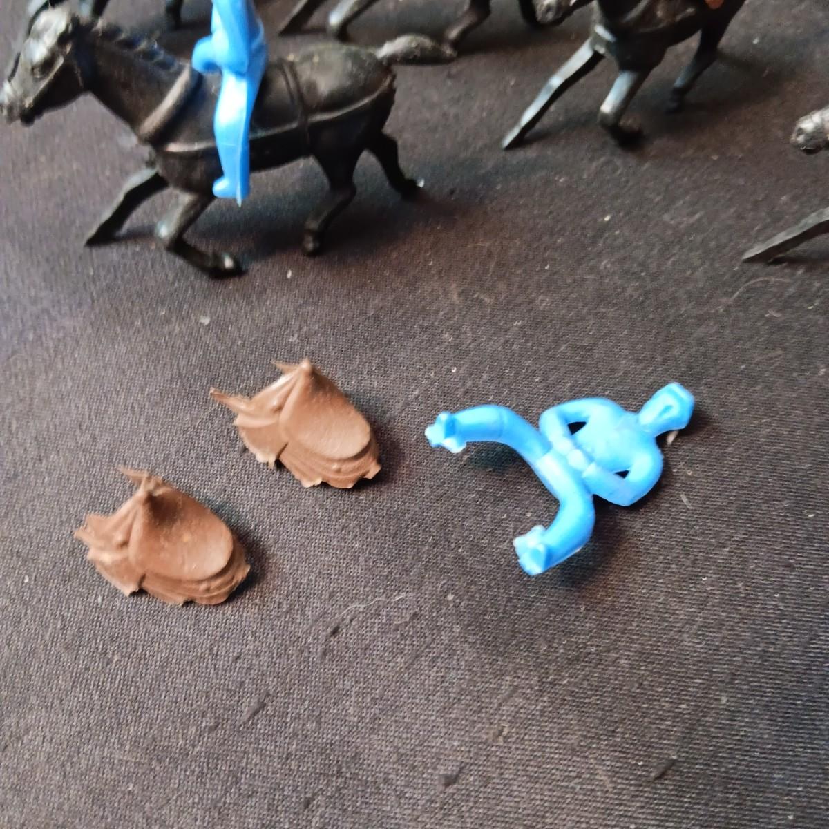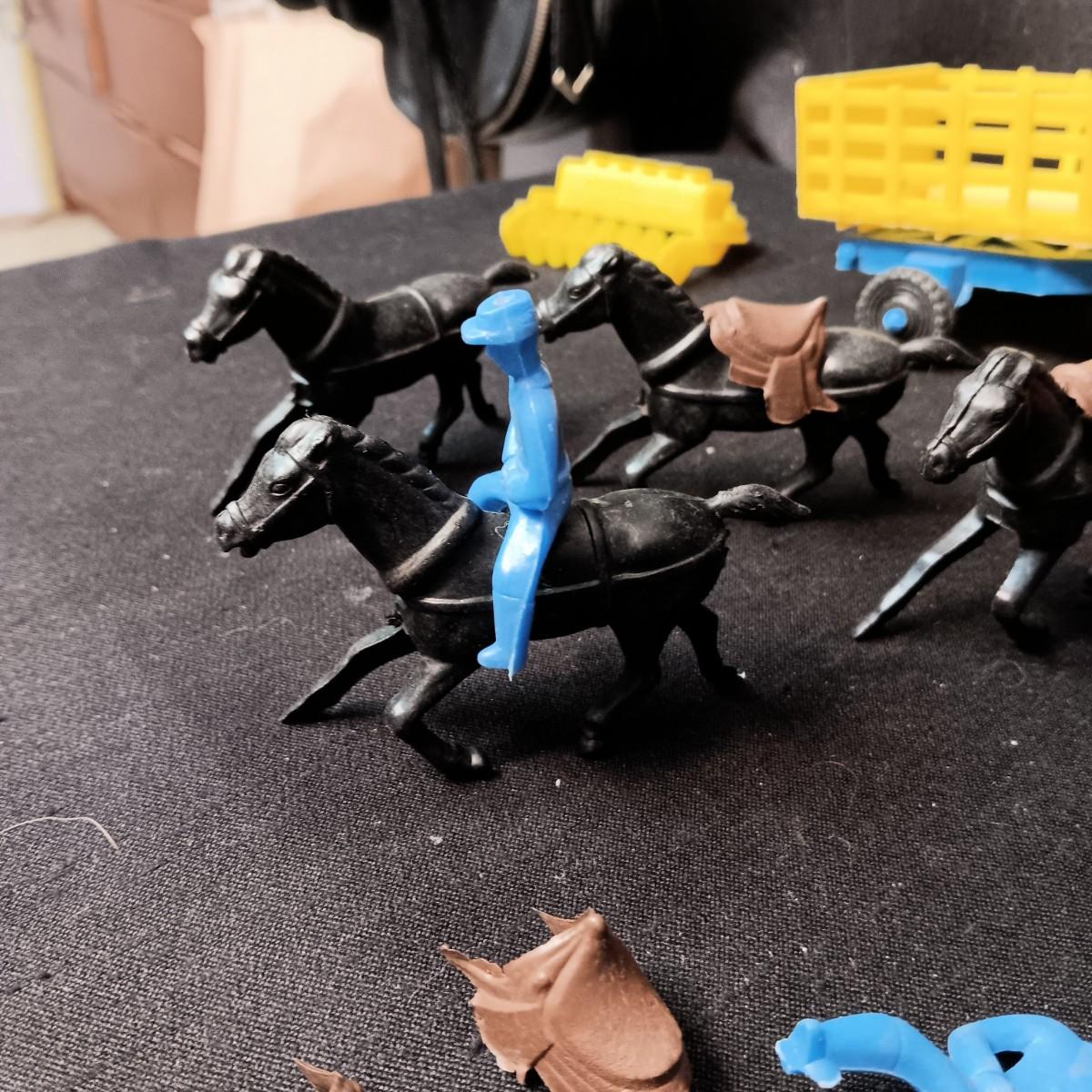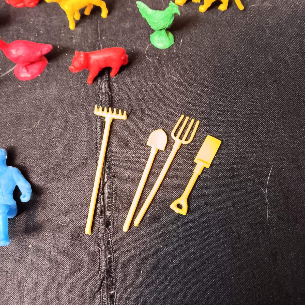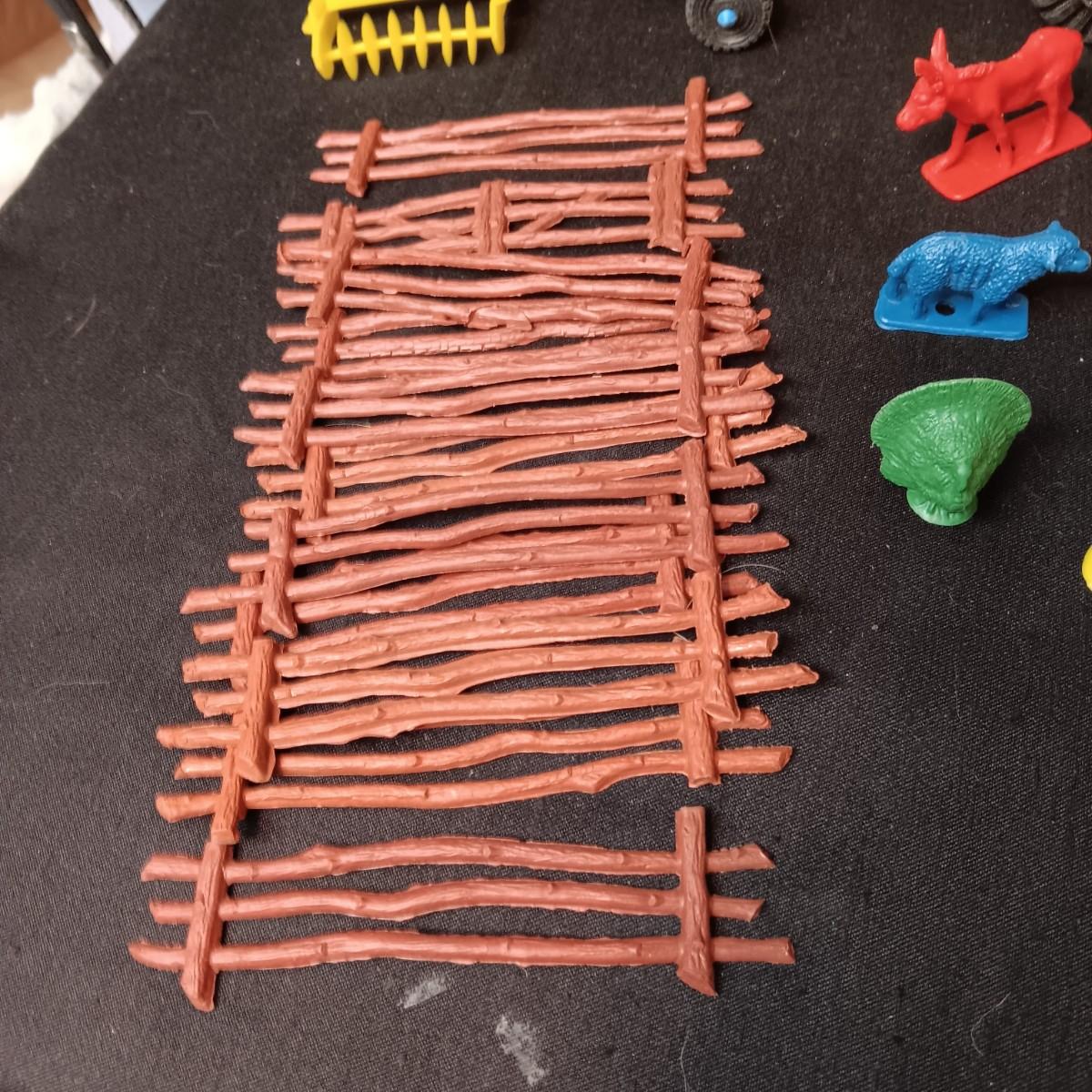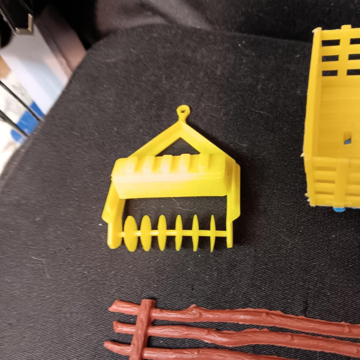 TOY TRACTOR W/IMPLEMENTS, FARM ANIMALS WITH FENCING AND HORSES WITH COWBOYS
