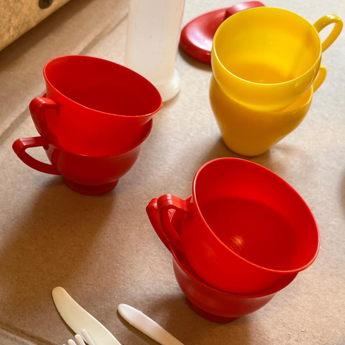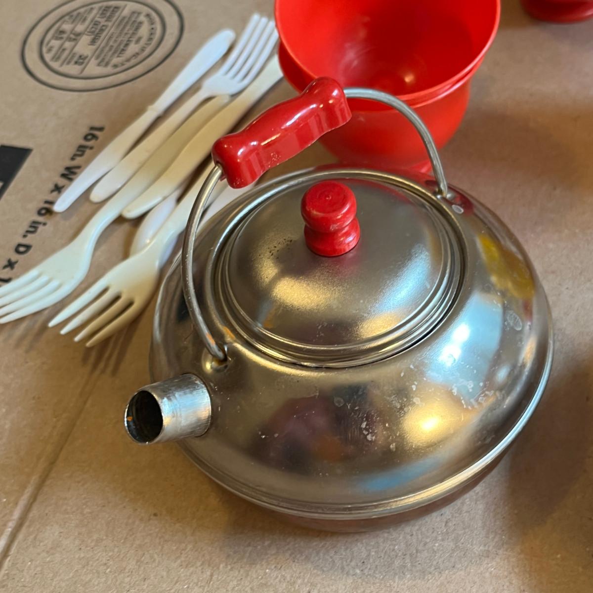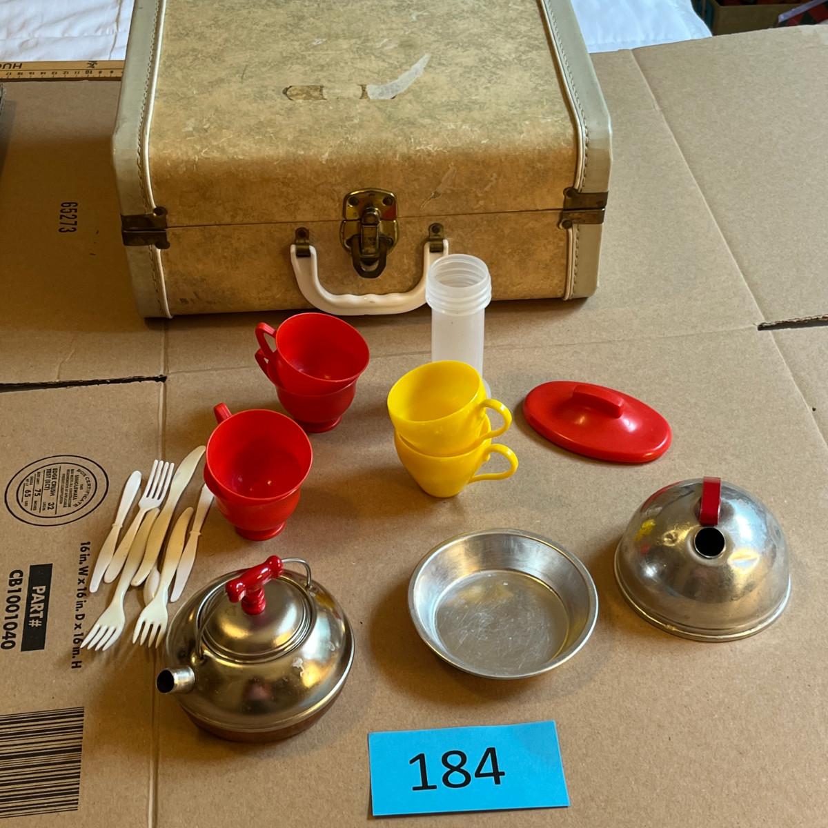 Toy trunk wMiith Plastic and tin dinnerware