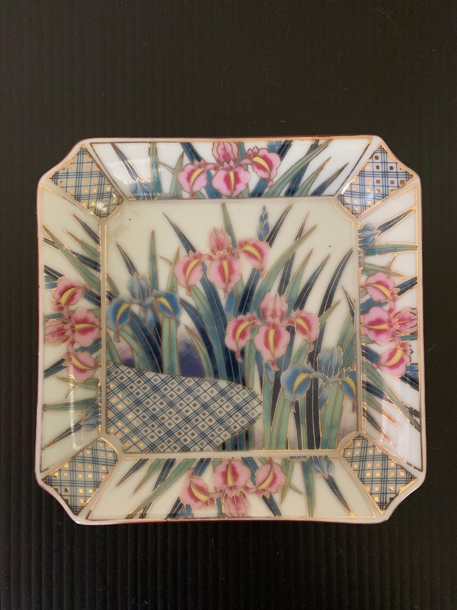 Toyo Shobu Japanese Iris Plate with gold accents. 6" square